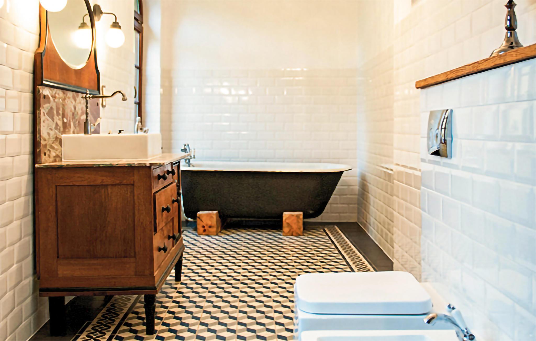 Badeværelse (nr. 1) - WC. Varmt og koldt vand. Badekar