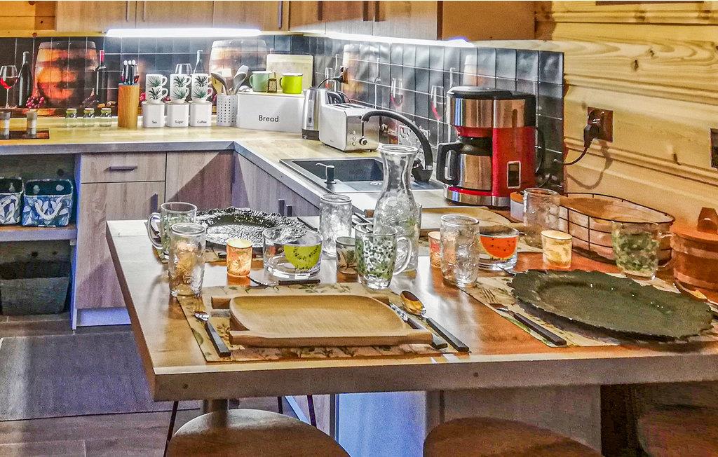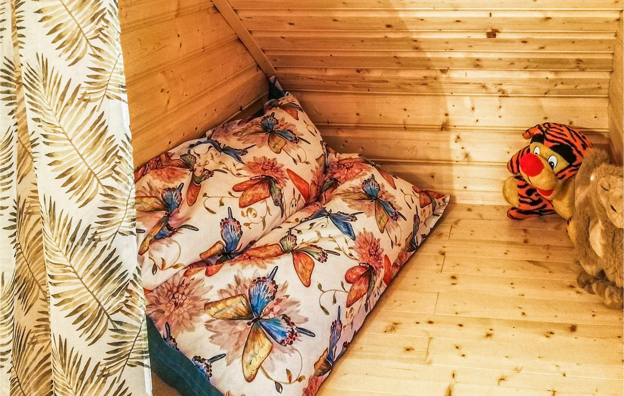 Huset er komfortabelt møbleret, og de mange træelementer udstråler masser af hygge. Huset ligger på en stor grund, der deles med et andet hus. I kan slappe af i haven med havemøbler, mens de yngste udforsker den veludstyrede legeplads.