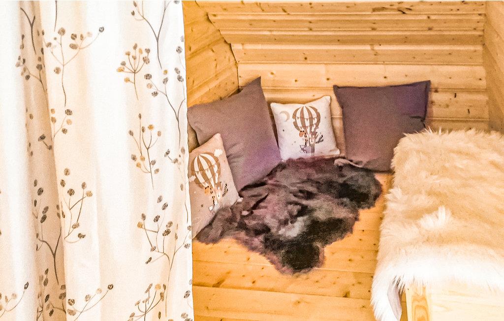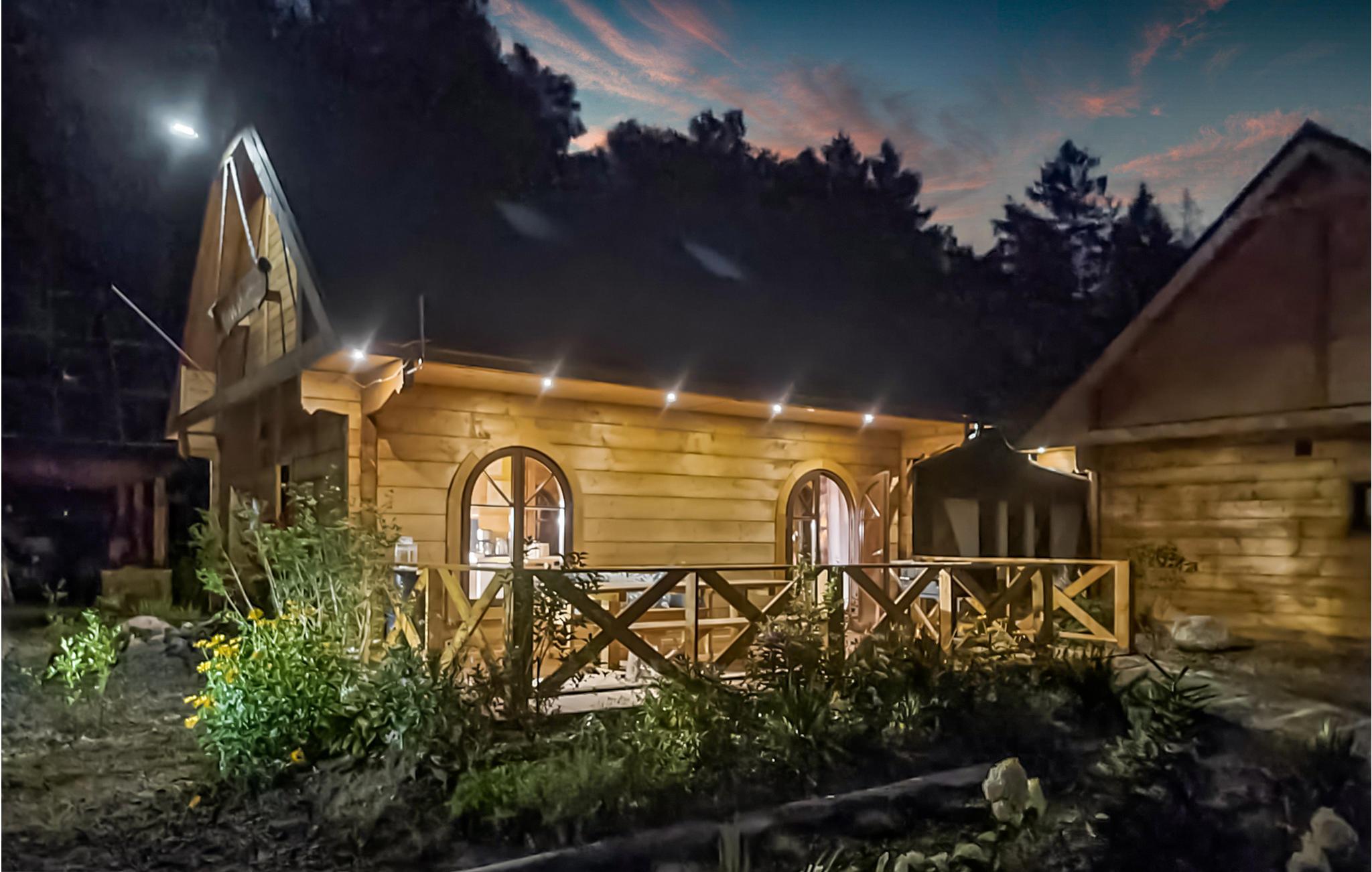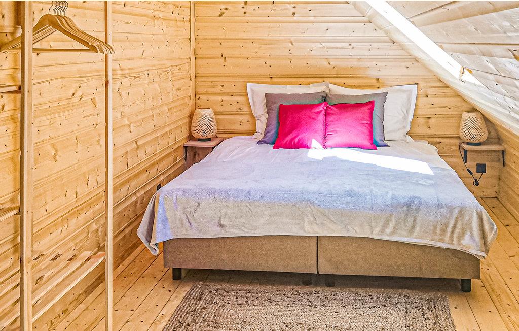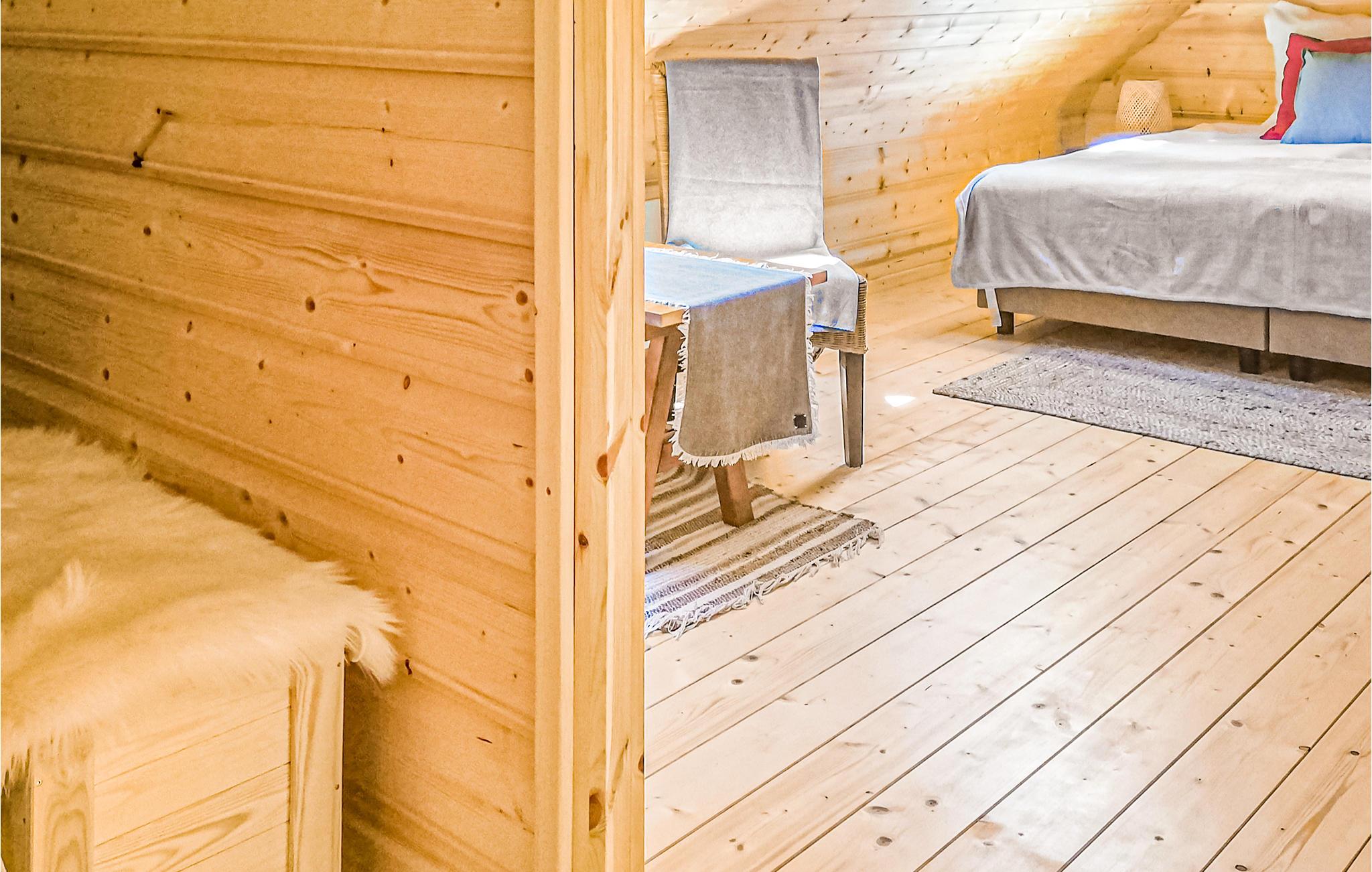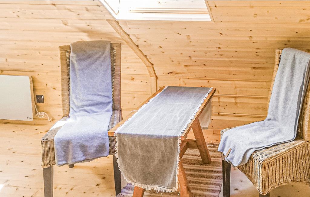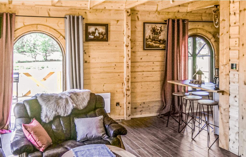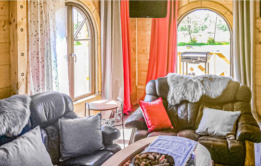 Velkommen til denne smukke bjælkehytte med dejlige detaljer som buede vinduer og flere hyggelige siddeområder. Udenfor kan I nyde morgenkaffen i solen på den overdækkede terrasse.