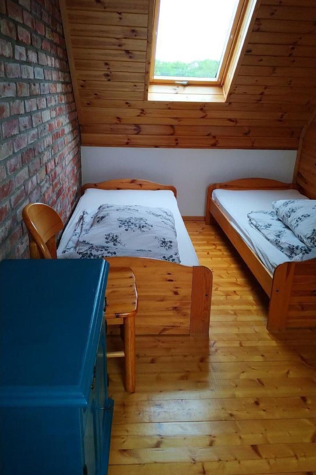 In the area there are three "twin houses "Two stone and one log.A log house has the unique atmosphere of a country house with all the equipment you need to spend time with your family.Brick houses have their unique charm, brick gives warmth and character.Each segment of the house has a floor on which there are two bedrooms, one with three single beds, the other with a double bed and one with a balcony. At the foot of the houses there is a living room with kitchenette and bathroom. In the living room you can light a goat and have a good time on rainy evenings.In each house guests have a brick barbecue, wooden benches and deckchairs that can be taken to the beach, as well as bicycles for the whole family;)The property is extensive, which means that our guests have space and freedom.We provide an intimate atmosphere away from crowded and cramped facilities. We want you to take a break from a fast-paced life in a quiet and safe environment.Every year we make changes for the better by listening to the suggestions of our guests.Don't wait and relax "Under Sumakiem "We invite you and wait;)