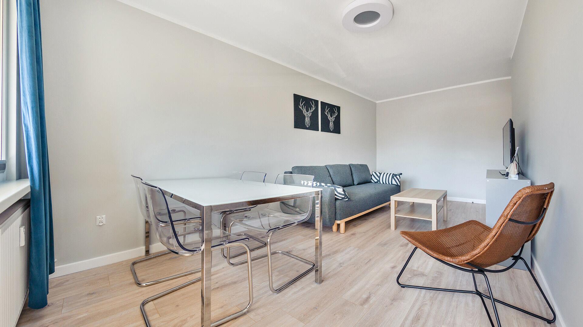 Zu den gewählten Apartments darf man mit dem Hund ankommen. Die zusätzlichen Kosten des Aufenthalts mit einem vierbeinigen Freund betragen 100 PLN (Einzelgebühr). Die Gäste, die den Aufenthalt mit dem Hund planen, bitten wir um eine frühere Kontaktaufnahme mit unserem Service im lokalen Büro.