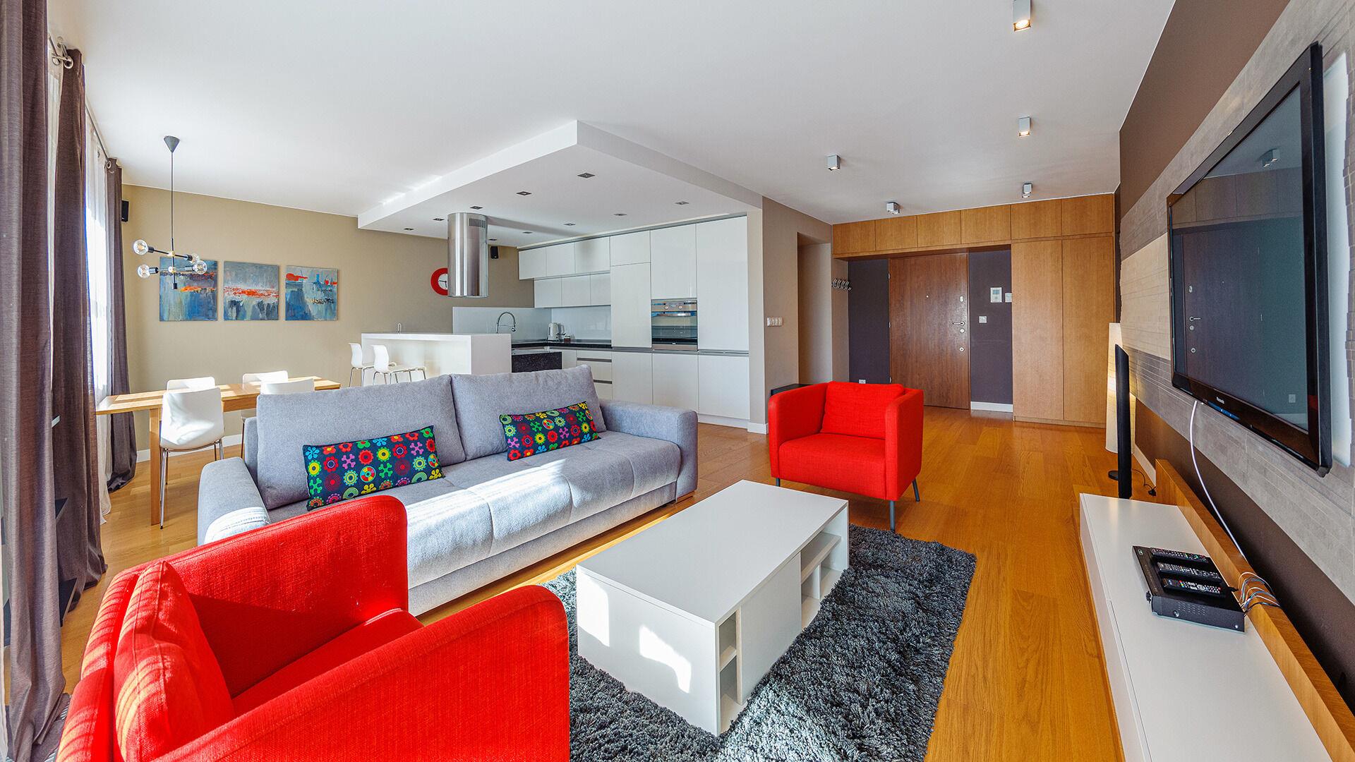 Zu den gewählten Apartments darf man mit dem Hund ankommen. Die zusätzlichen Kosten des Aufenthalts mit einem vierbeinigen Freund betragen 100 PLN (Einzelgebühr). Die Gäste, die den Aufenthalt mit dem Hund planen, bitten wir um eine frühere Kontaktaufnahme mit unserem Service im lokalen Büro.