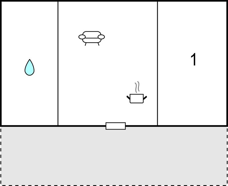Badeværelse 4m2 (nr. 1) - WC. Varmt og koldt vand. Bruser
