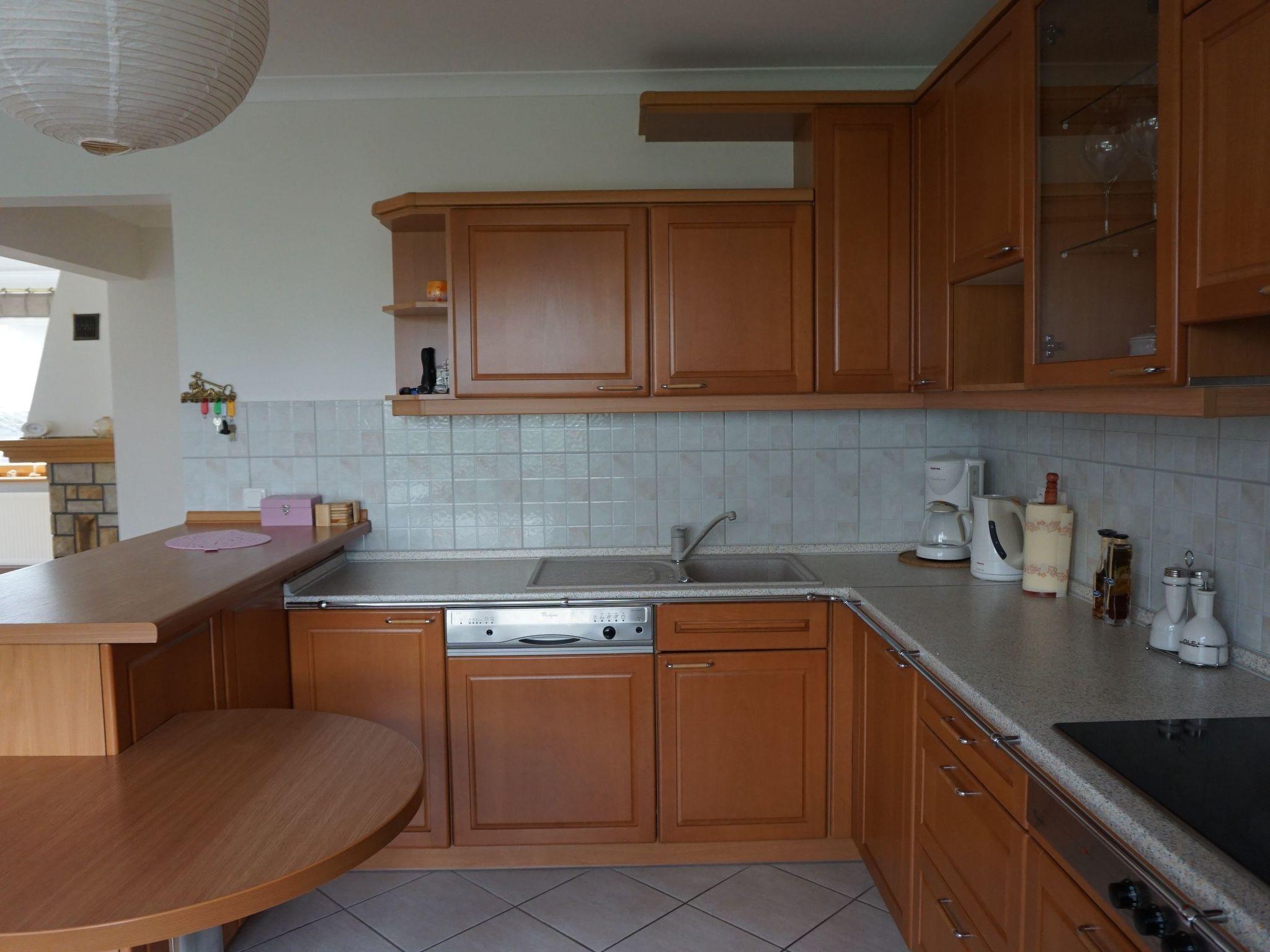 Kitchen equipped with dishwasher, 4-burner cooker with ceramic hob, oven, kettle, fridge, microwave, etc.