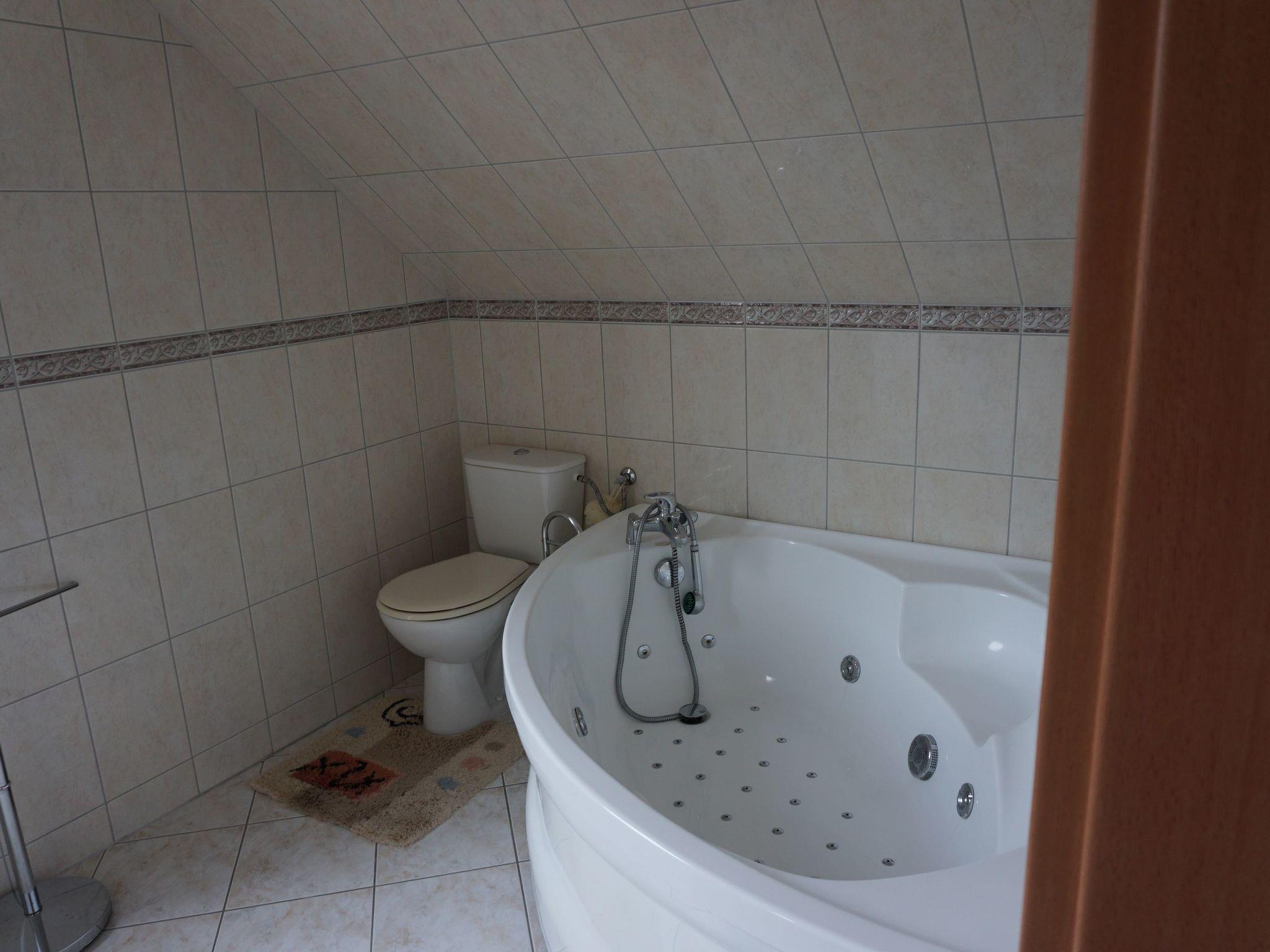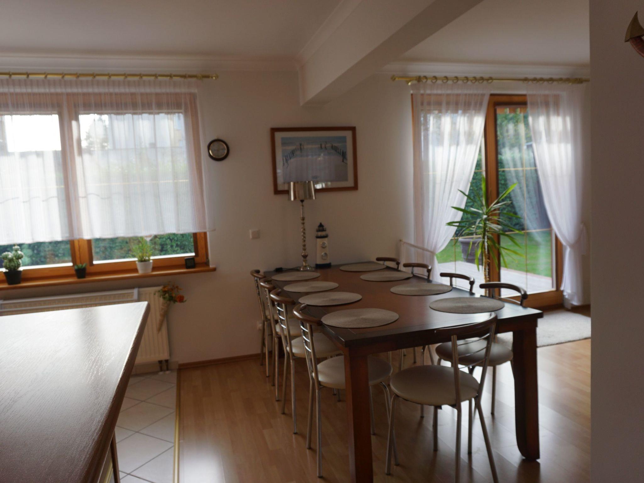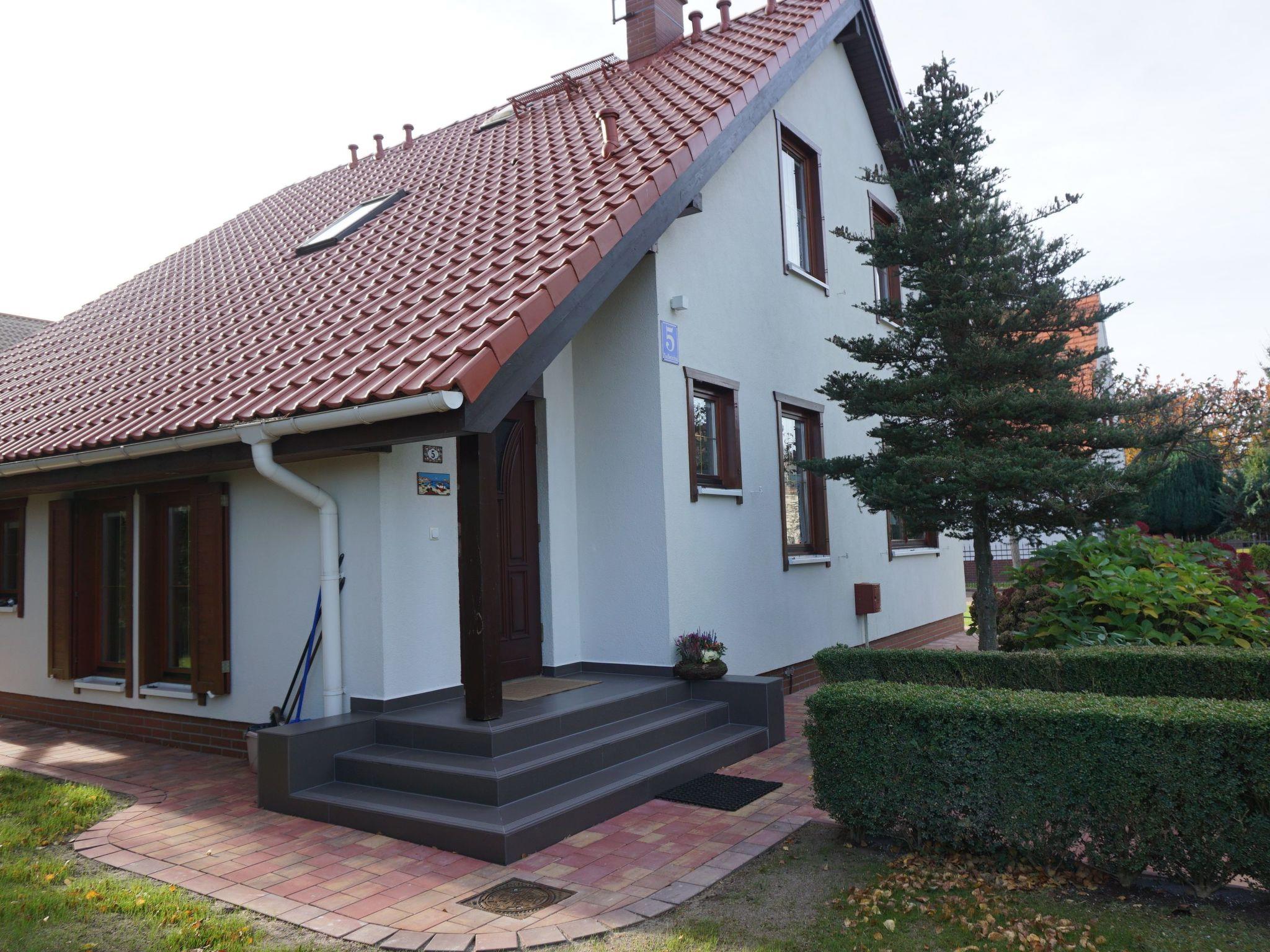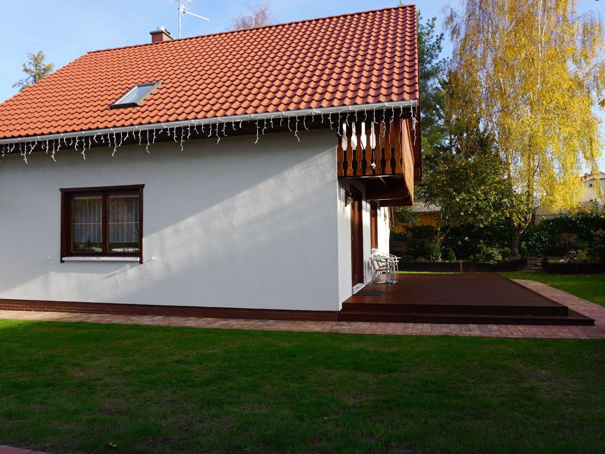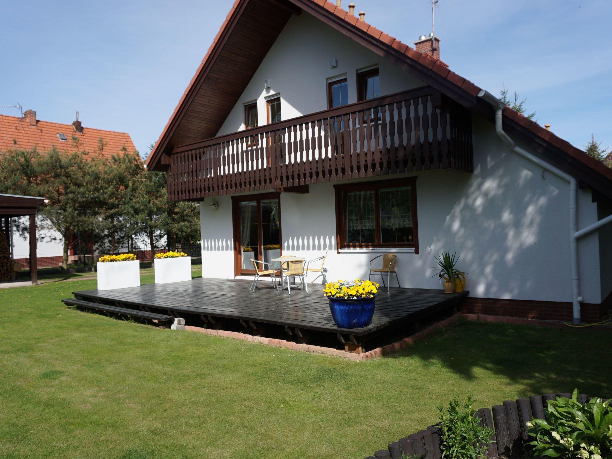 A beautiful Canadian-style year-round house of 125 m2 located in the centre of Ustronie Morskie in a quiet street 50 metres from the sea and a lovely beach. On the ground floor there is a living room with a fireplace, TV + German channels, WLAN, kitchen, bathroom with shower, sauna, toilet, boiler room with gas heating and laundry facilities and a sunny terrace. On the first floor there are 2 bedrooms each with a double bed for up to 4 persons and 1 bedroom with two 140 cm mattresses for 2 children /children's playroom/ , bathroom with whirlpool bath and toilet.