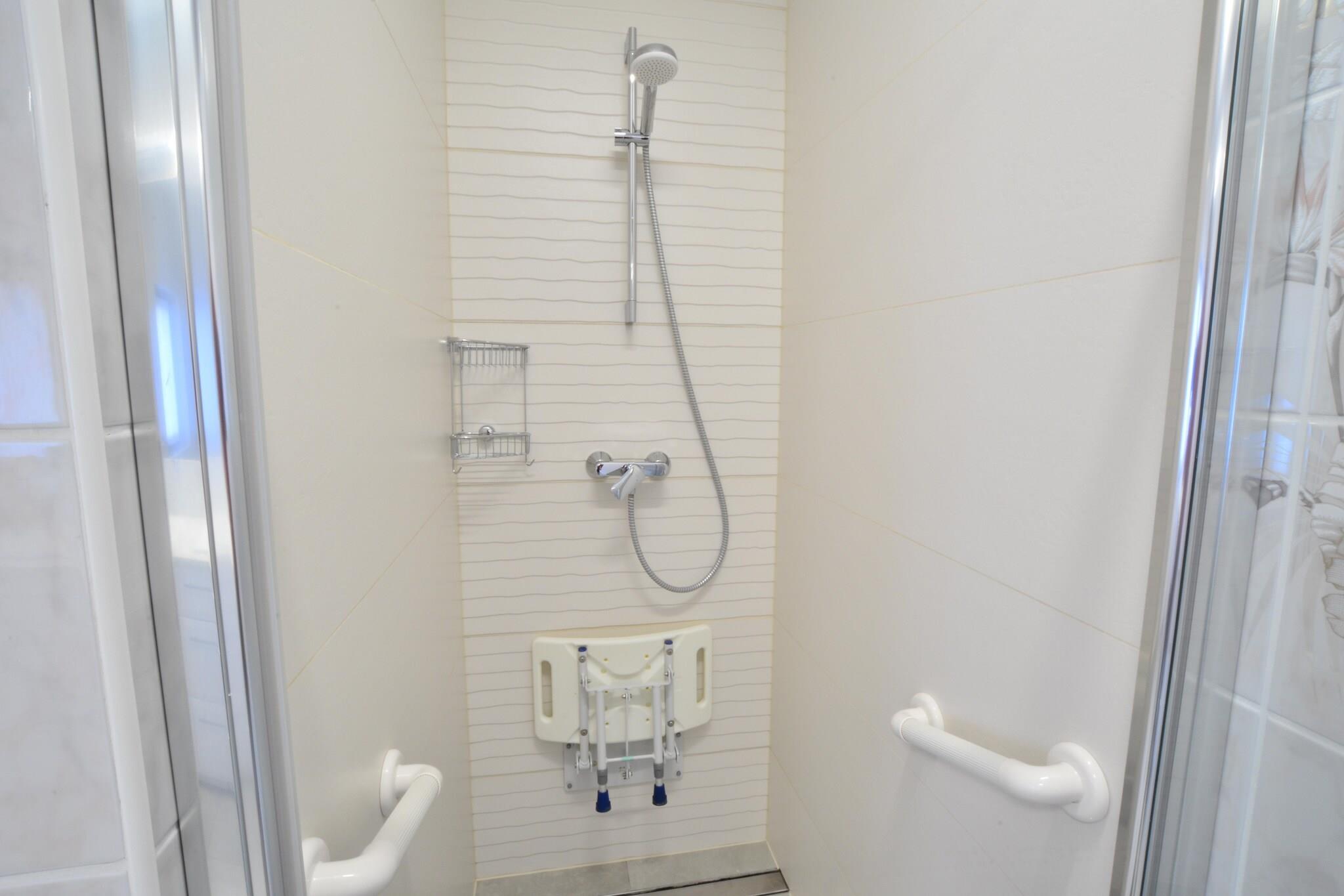 Stueetage: (Stue(Fjernsyn(fladskærm, parabol, Tyske TV-kanaler, Internationale TV-kanaler)), spisestue(spisebord(8 personer)), åbent køkken(spisebord, kogeplade(Komfur med fire kogeplader, glaskeramisk, elektrisk), elkedel, emhætte, kaffemaskine, ovn, mikrobølgeovn, opvaskemaskine , køle-fryseskab), toilet(håndvask, toilet), sauna(privat, 3 personer)(bruser)) På 1. etage: (soveværelse(dobbeltseng, Fjernsyn(fladskærm, parabol, Tyske TV-kanaler, Internationale TV-kanaler)), soveværelse(dobbeltseng, Fjernsyn(fladskærm, parabol, Tyske TV-kanaler, Internationale TV-kanaler)), badeværelse(bruser, håndvask, håndvask, toilet, bidet, vaskemaskine, føntørrer)) På 2. etage: (soveværelse(enkeltseng, enkeltseng, dobbeltsovesofa, Fjernsyn(fladskærm, parabol, Tyske TV-kanaler, Internationale TV-kanaler))) Reception, Internetadgang, Legeområde, sauna(privat), balkon, varme(central), klimaanlæg, terrasse(overdækket), have(privat, indhegnet, 500 m2), havemøbler, grill(trækul), parkering, trampolin(deles med andre gæster), dam, rutsjebane(deles med andre gæster), strygebræt, strygejern, Gyngestativ