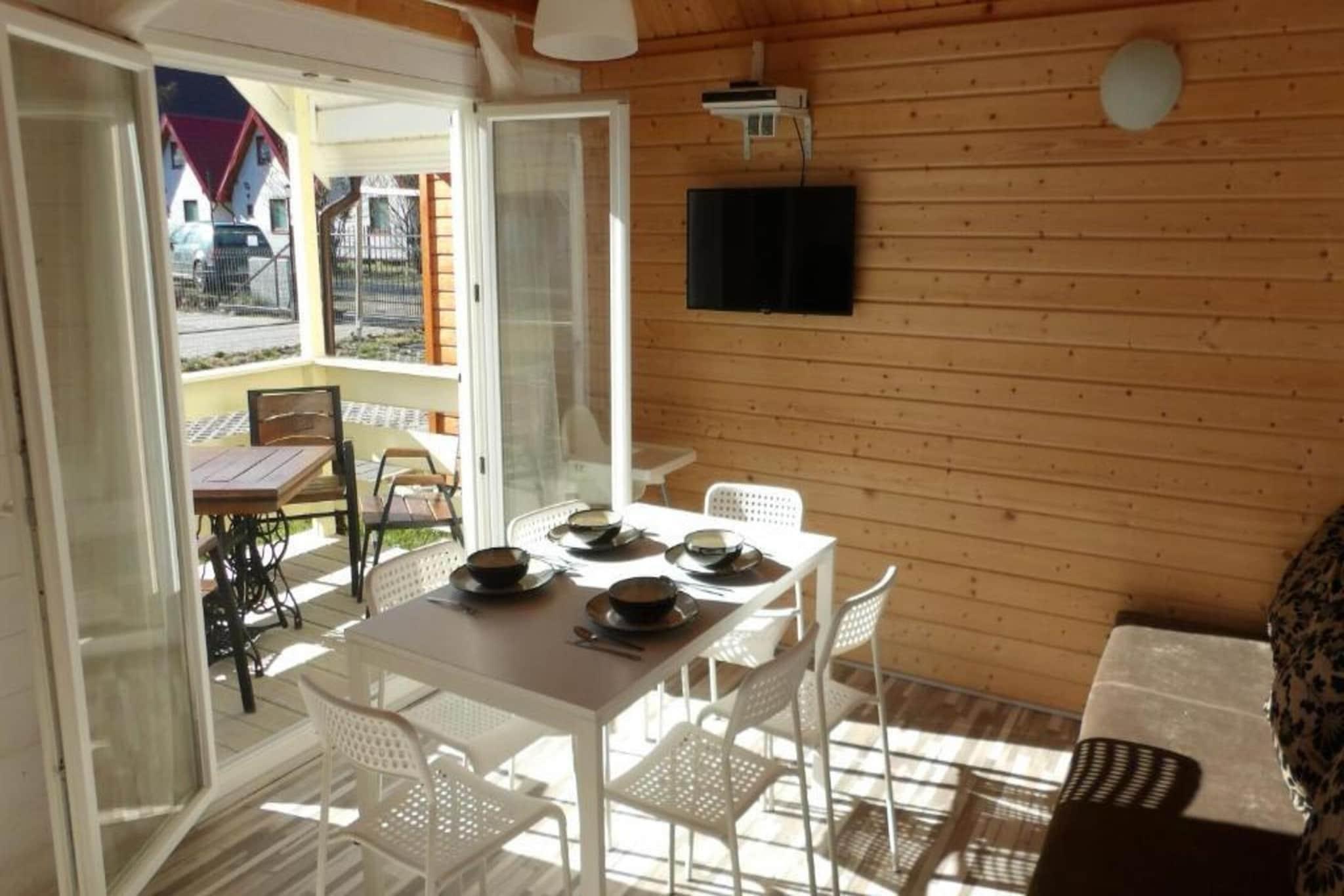 Et familieferiested i et roligt område tæt på stranden og feriestedets centrum. Det hyggelige feriehus består af en stue i forbindelse med køkkenet, et soveværelse (2 enkeltsenge, der kan sættes sammen til en dobbeltseng) og et badeværelse med bruser. På mezzaninen er der et andet soveværelse (2 enkeltsenge, der kan sættes sammen til en dobbeltseng). Hvert hus har en overdækket terrasse med et sæt havemøbler. Elvarme + aircondition. Trådløst internet tilgængeligt. Det indhegnede område af centret omfatter en legeplads, parkering (1 plads/hus) og flere grillstationer. Gæster med hunde er velkomne (undtagen kampracer). Prisen for opholdet inkluderer: sengetøj, vandforbrug, internet, aircondition, ophold med hund (max 1, undtagen kampracer), parkering (1 plads/hus), opholdsafgift, barneseng og høj stol (tilmelding nødvendig ). Ustronie Morskie ligger i Vestpommern, 10 km øst for Kolobrzeg. En sand, ren strand, en vandremole, en atmosfære ved havet og en malerisk klippe er fordelene ved dette feriested. Ustronie Aktive mennesker kan udover solbadning og havbadning drage fordel af vandre- og cykelture, ridning og naturskønne flyvninger. Der er 2 vandremoler i Ustronie Morskie. Den lokale Aquapark Helios inviterer elskere af svømning i poolen (indendørs swimmingpool, udendørs pool, hydromassage, spabad). Den internationale cykelrute R-10 løber gennem Ustronie Morskie, langs hvilken du nemt og behageligt kan cykle til Kolobrzeg, cirka 10 km væk (en by med mange monumenter, et fyrtårn, en lang vandremole og en promenade). På vejen passerer du Sianozety - et lille sommerferiested. Går du i den modsatte retning (øst), kan du besøge Gaski (fyrtårn), Sarbinowo og endda Mielno, der ligger på spidsen mellem Østersøen og Jamno-søen.