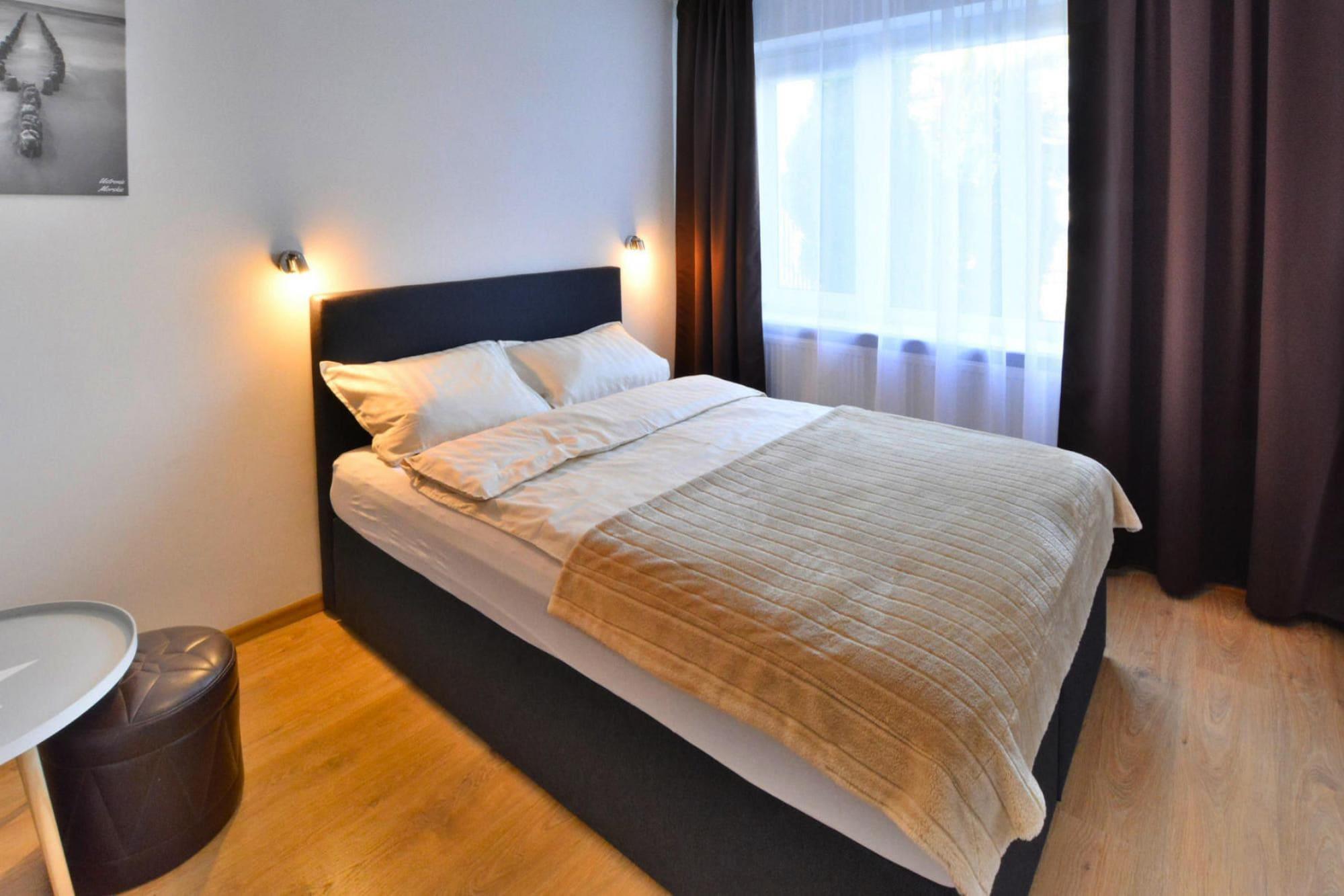 Sommerhus på en sikker, indhegnet grund i en rolig del af feriestedet, 650 m fra stranden ved havet. Byens centrum med mange attraktioner, caféer og restauranter inden for få skridt. Hus i 3 etager, komfortabelt og veludstyret. I stueetagen er der 3 separate soveværelser og 2 badeværelser (hver med bruser). På første sal er der en rummelig stue med stort bord, sofa og TV. Der er også pejs (træ kan købes hos værten) og udgang til altan. På samme etage er der køkken og endnu et badeværelse med bruser. På anden sal er der 3 soveværelser og et badeværelse med badekar (der er vaskemaskine). Centralvarme. Trådløst internet er tilgængeligt. Det indhegnede område er til eksklusiv brug for gæster, sammen med et sæt havemøbler og grilludstyr (der er et havepavillon). Der er en sikker parkeringsplads og en lille legeplads. Prisen for opholdet inkluderer: vand- og elforbrug, varme, internet, parkering, høj stol. Ustronie Morskie ligger i Vestpommern, 10 km øst for Kolobrzeg. En sand, ren strand, en vandremole, en atmosfære ved havet og en malerisk klippe er fordelene ved dette feriested. Ustronie Morskie er et velkendt og populært feriested på den polske kyst - her arrangeres mange kulturelle og sportsbegivenheder. Aktive mennesker kan udover solbadning og havbadning drage fordel af vandre- og cykelture, ridning og naturskønne flyvninger. Vandet i denne region er blandt det reneste på den polske kyst. Aquapark Helios inviterer elskere af svømning i poolen (indendørs swimmingpool, udendørs pool, hydromassage, spabad). Dette sportskompleks tilbyder også en bowlingbane, tennisbaner og sportsbaner. Vandlandet ligger kun 200 m fra centrum.