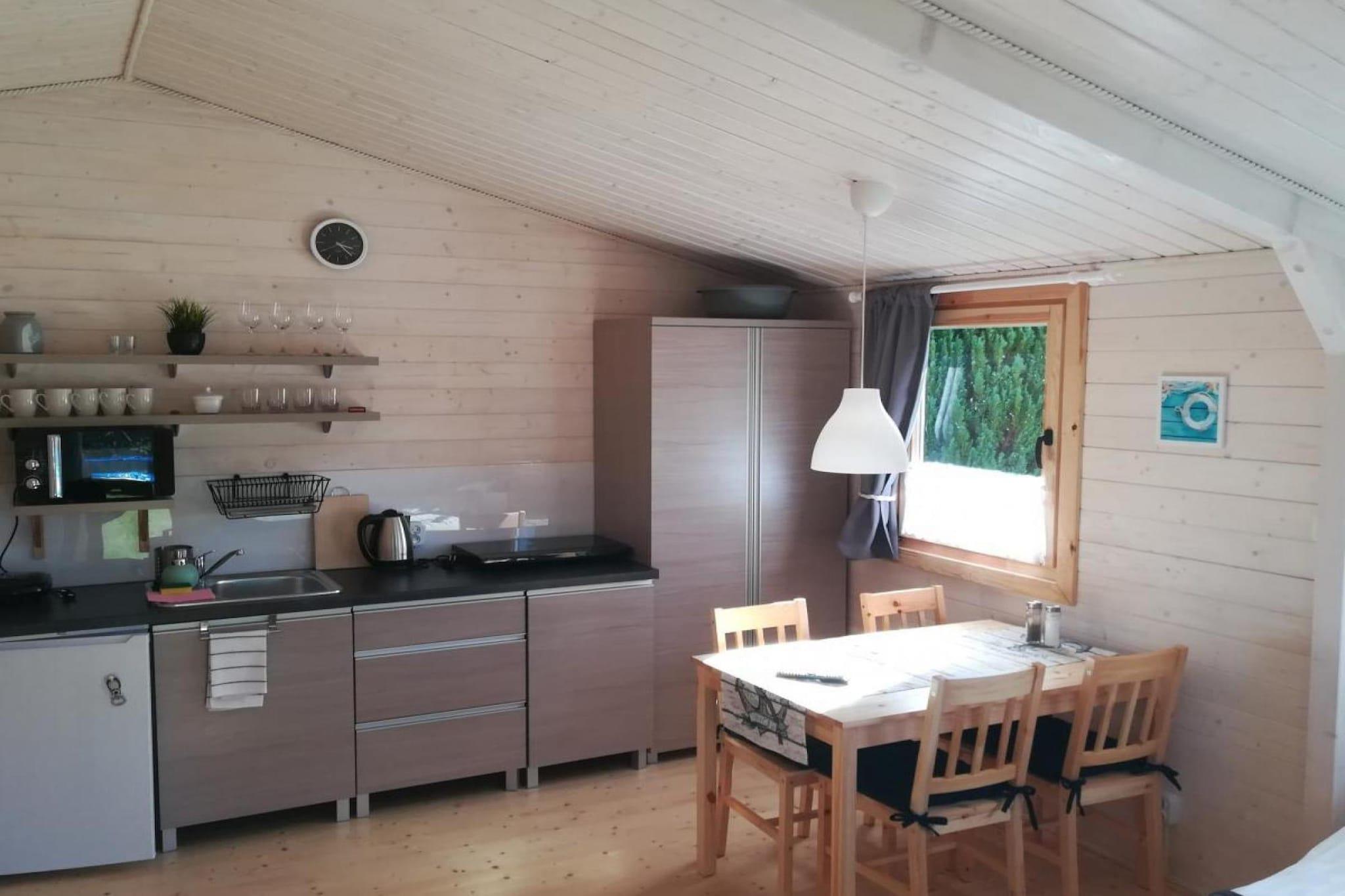 Stueetage: (åbent køkken(kogeplade(Komfur med to kogeplader, induktion), elkedel, brødrister, mikrobølgeovn, køle-fryseskab), stue / spisestue(dobbeltsovesofa, Fjernsyn(fladskærm), spisebord), soveværelse(enkeltseng, enkeltseng), badeværelse(bruser, håndvask, toilet)) Reception, Internetadgang, Legeområde, Græsplæne, varme(elektrisk), terrasse(overdækket), have(deles med andre gæster, indhegnet, 800 m2), havemøbler, solstole, grill(trækul), parkering, trampolin(deles med andre gæster), sandkasse(deles med andre gæster), barnestol, Haveskur, Gyngestativ