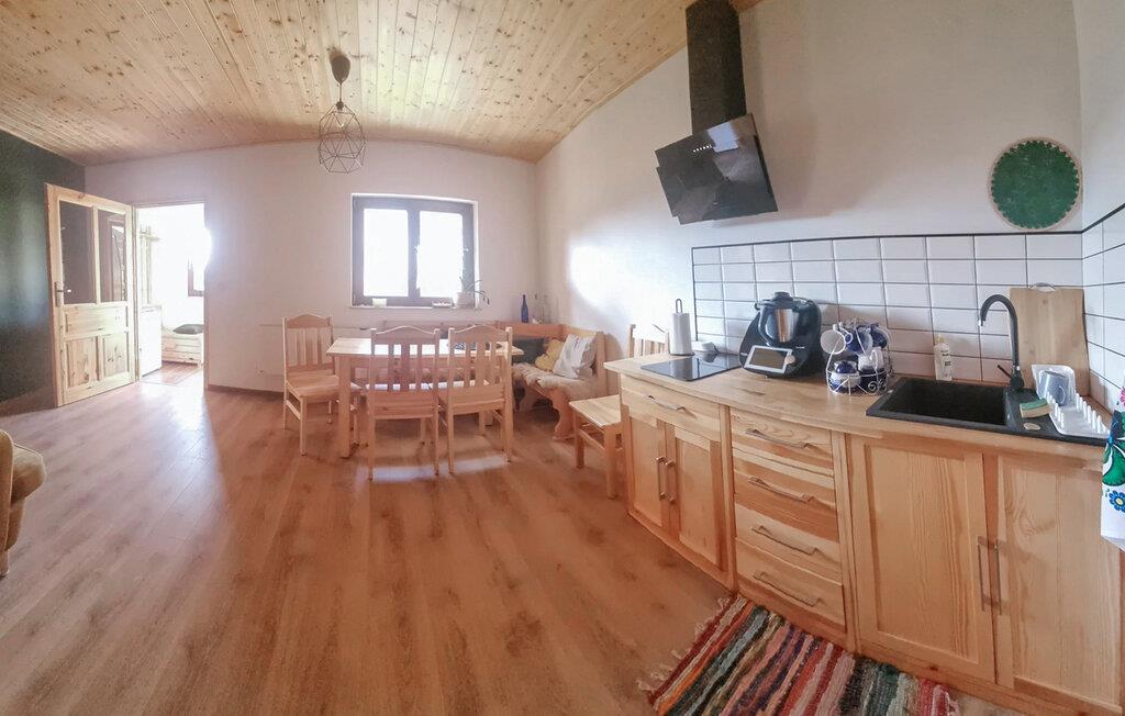 Nyd en skøn pause fra hverdagen i jeres hyggelige feriehus lidt uden for Wadowice. Den idylliske beliggenhed mellem bløde bakker og skove giver det perfekte tilflugtssted til jeres ferie. Lad jer fortrylle af den friske luft og det imponerende bjergpanorama. Den åbne opholdsstue kombinerer harmonisk trædesign med moderne elementer. Tilbered måltider sammen i det kærligt indrettede køkken, og nyd hyggelige aftener ved spisebordet.