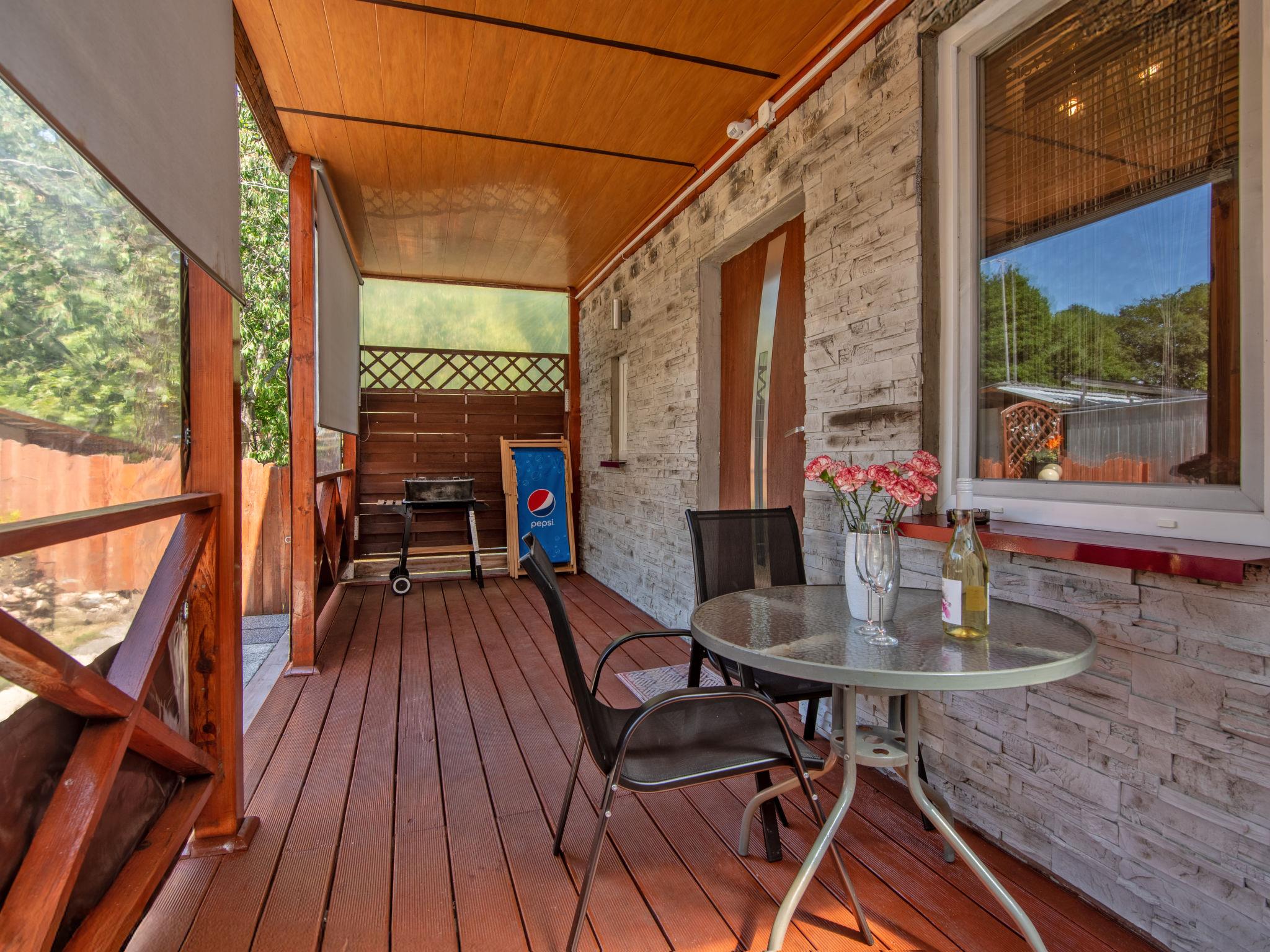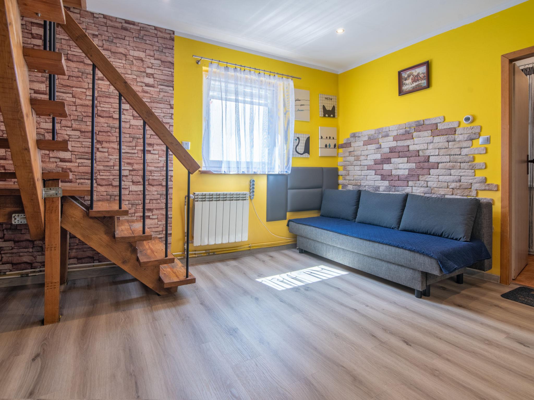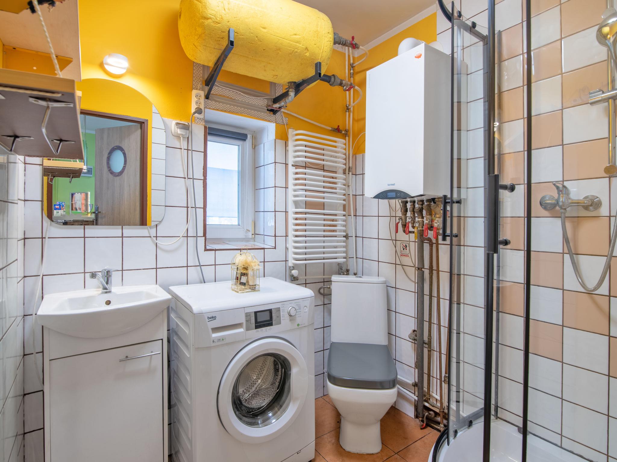 "6 osobowy", 3-room house 75 m2 on 2 levels. Practical and comfortable furnishings: living/dining room with 1 double sofabed. Exit to the terrace. Open kitchen (4 hot plates, oven) with dining nook. Shower/WC. Heating, gas heating. Upper floor: 1 room with 1 french bed. 1 room with 1 french bed. Terrace 12 m2. Terrace furniture, deck chairs (4). View of the resort. Facilities: Internet (WiFi). Parking at the house. Maximum 2 pets/ dogs allowed.