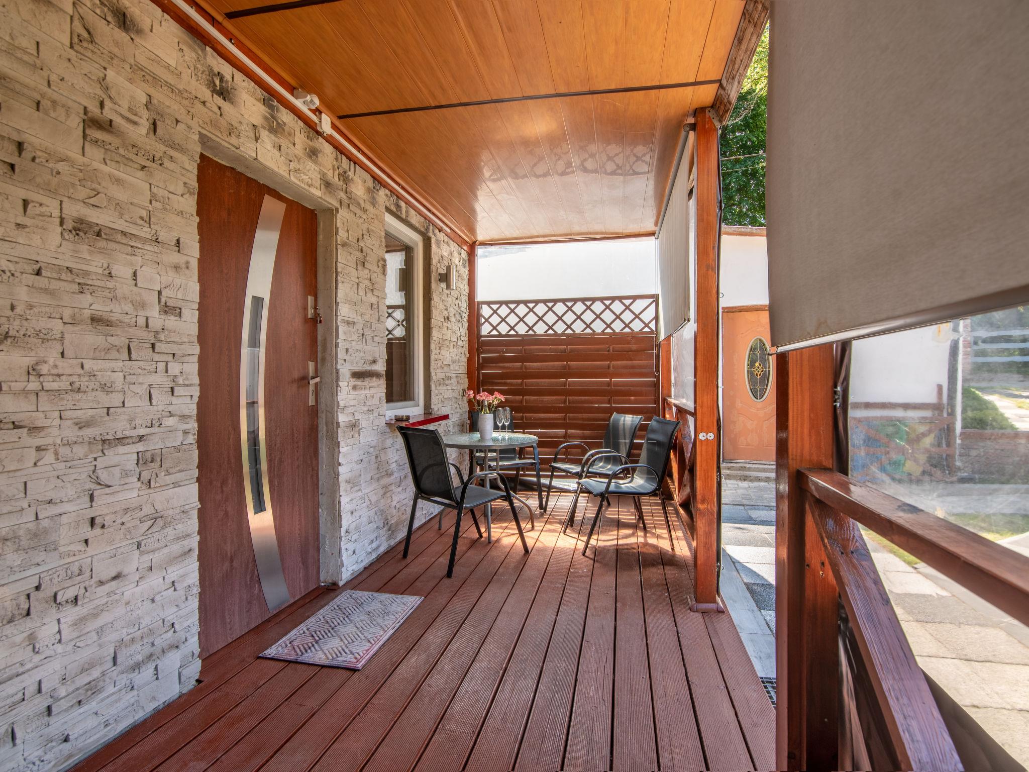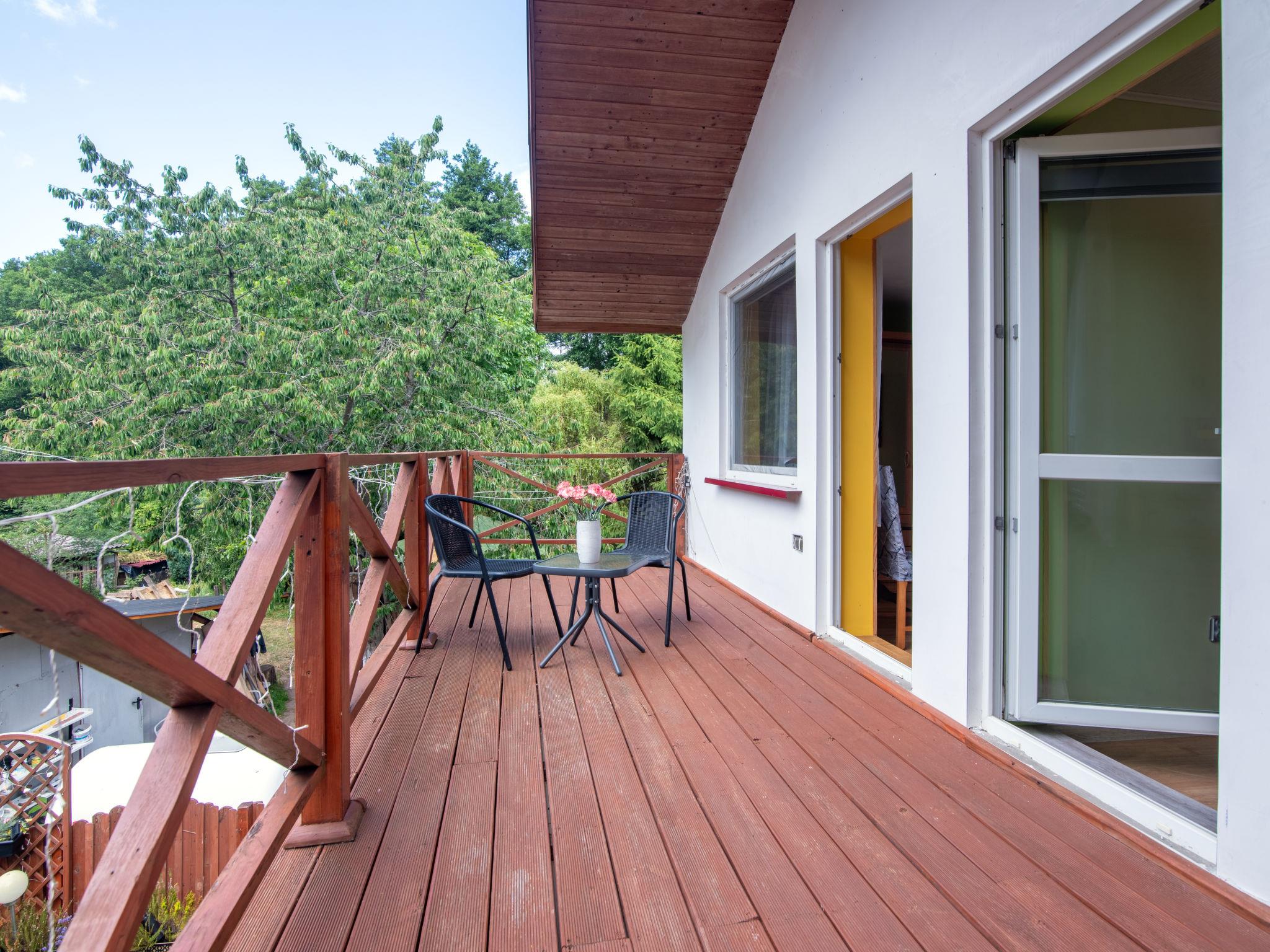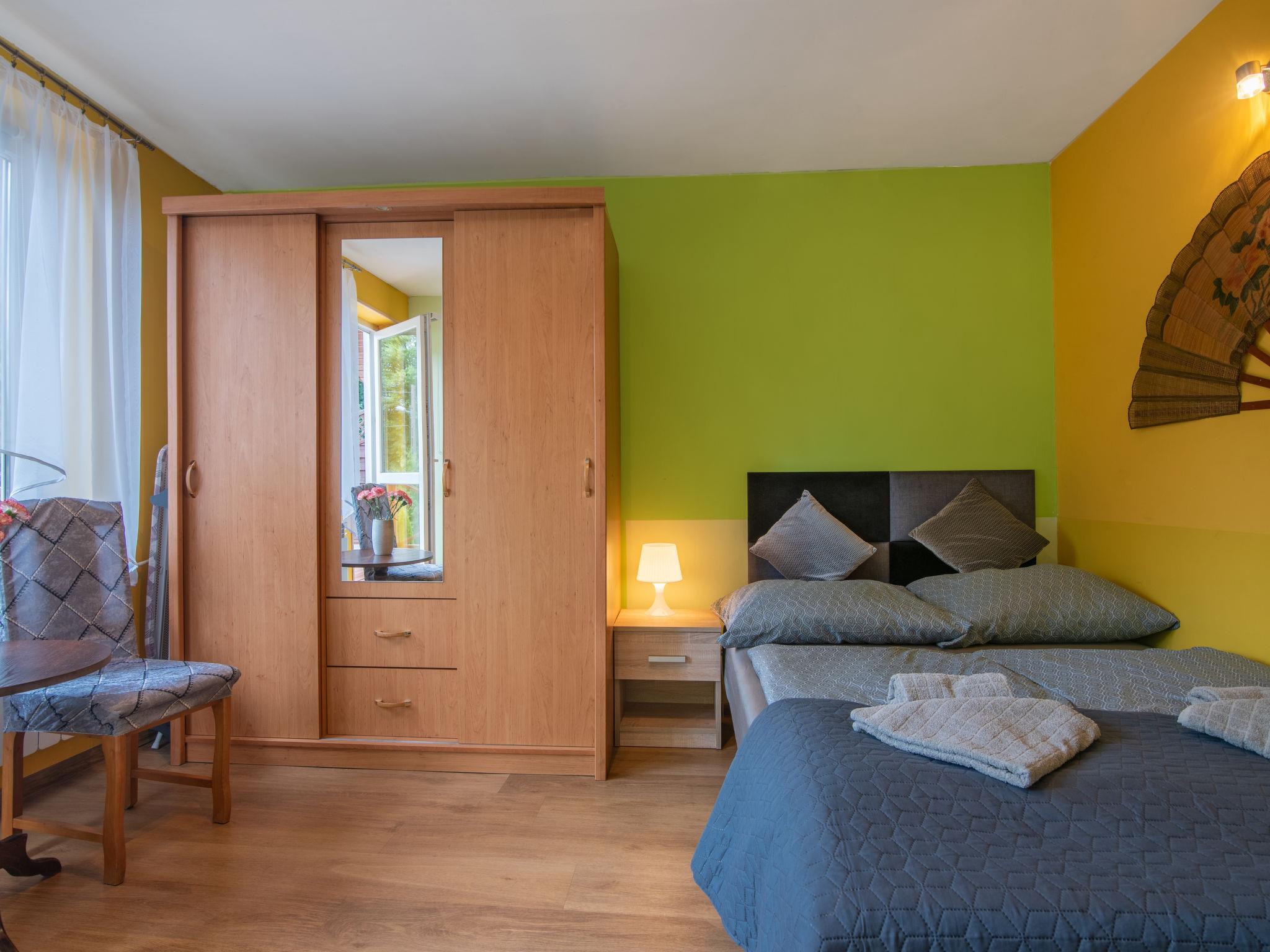 "6 osobowy", 3-room house 75 m2 on 2 levels. Practical and comfortable furnishings: living/dining room with 1 double sofabed. Exit to the terrace. Open kitchen (4 hot plates, oven) with dining nook. Shower/WC. Heating, gas heating. Upper floor: 1 room with 1 french bed. 1 room with 1 french bed. Terrace 12 m2. Terrace furniture, deck chairs (4). View of the resort. Facilities: Internet (WiFi). Parking at the house. Maximum 2 pets/ dogs allowed.
