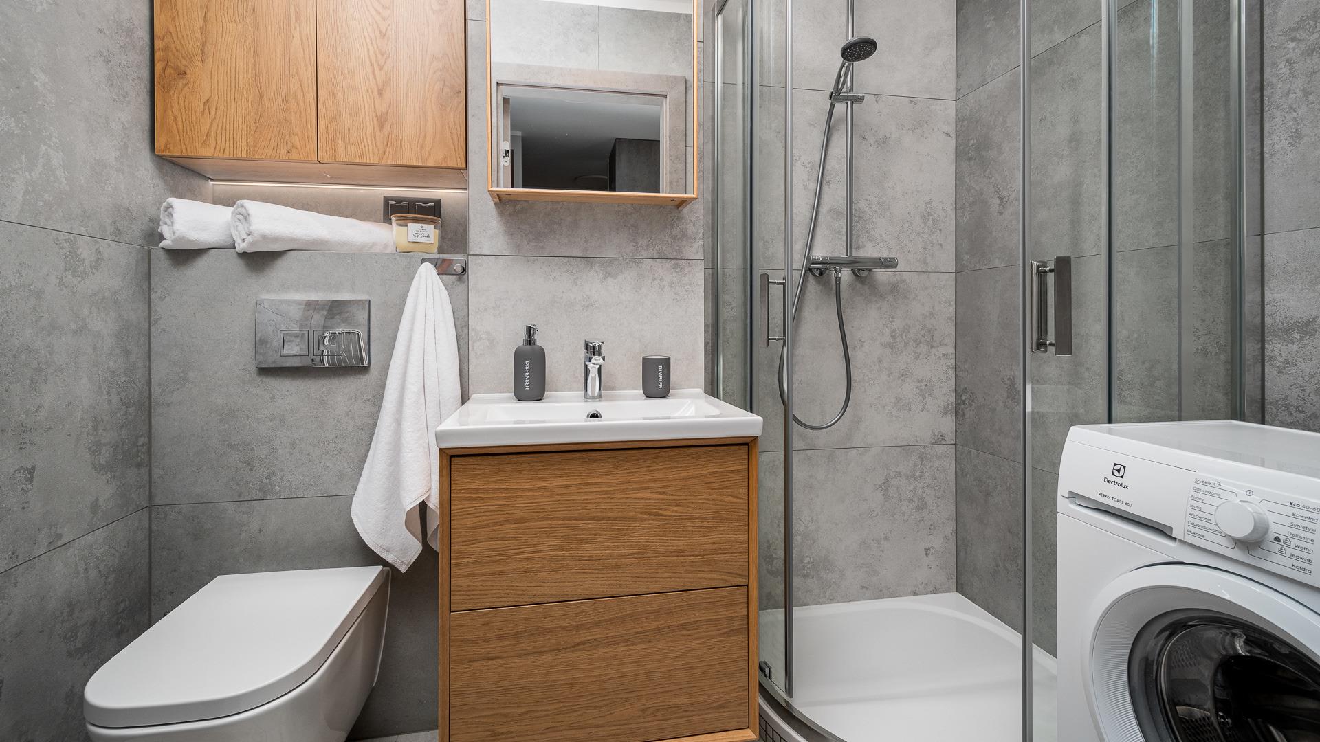 Die gut ausgestattete Küche lässt keine Wünsche offen: Neben einem Kühlschrank und einem Herd zum Kochen finden Sie hier auch eine Spülmaschine, die Ihnen den Abwasch abnimmt. Ein weiteres Highlight: Eine Waschmaschine steht ebenfalls zur Verfügung, sodass Sie sich um Ihre Wäsche keine Sorgen machen müssen.