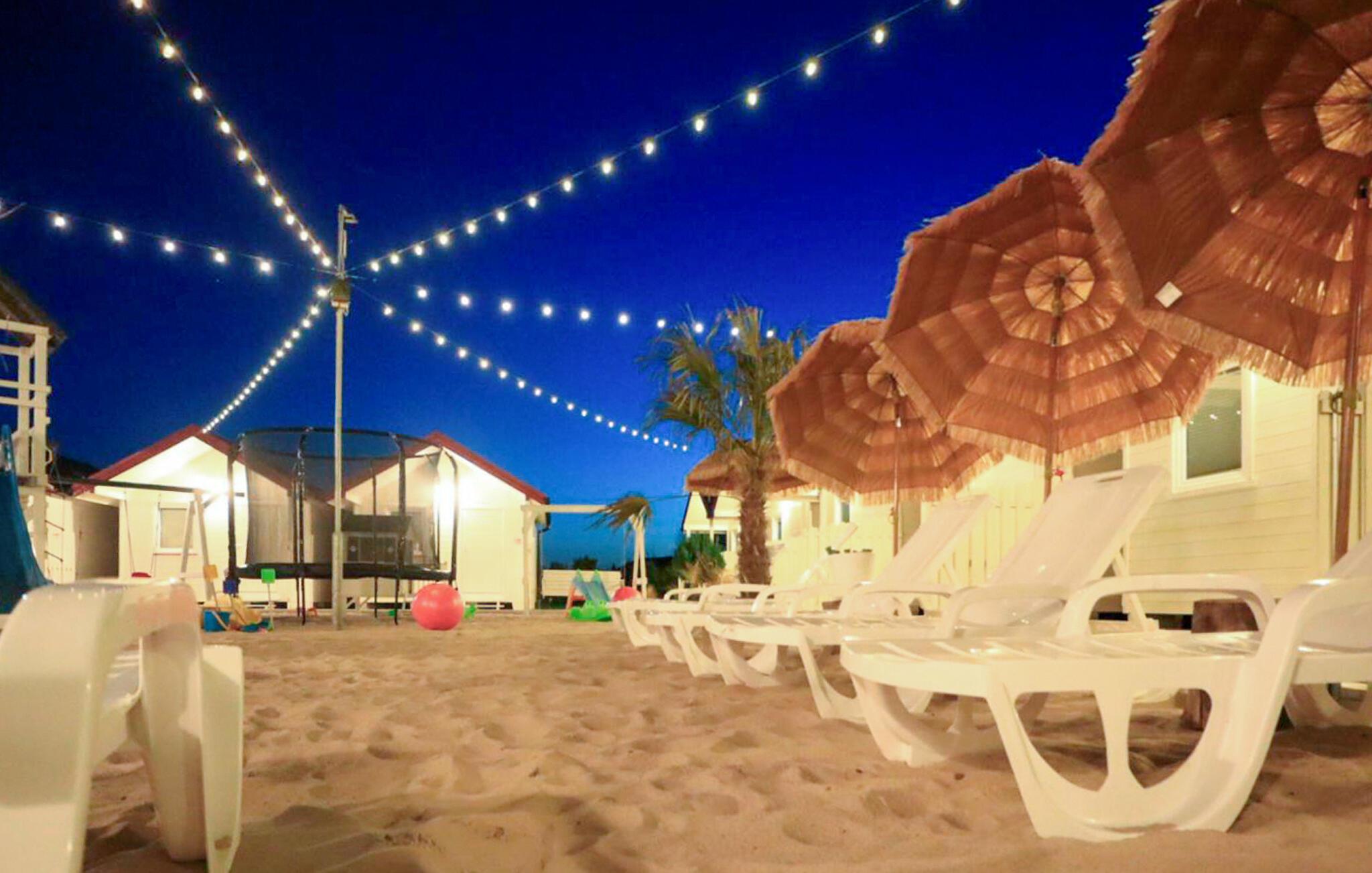 Dette lille, hyggelige træhus lægger op til en afslappende ferie. Den praktiske og behagelige indretning har alt, hvad I behøver for et bekymringsfrit ophold. Begynd dagen med en kop kaffe på terrassen, mens I planlægger dagens aktiviteter, mens børnene leger på den store legeplads i anlægget. Til afslapning står der solsenge og et spabad til rådighed – det perfekte fristed for hele familien.