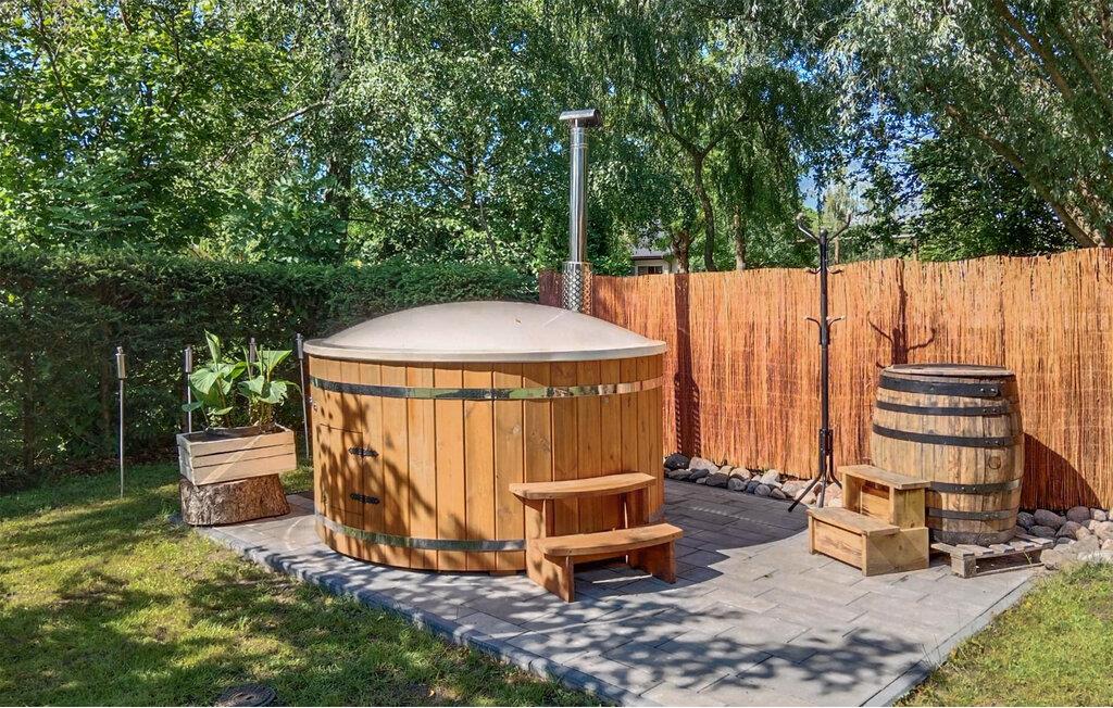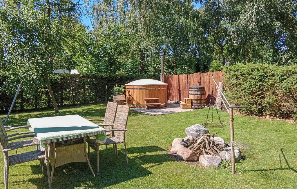 Bo på en stor indhegnet grund, i dette moderne feriehus, der ligger som nabo til ejers hus (på samme grund).