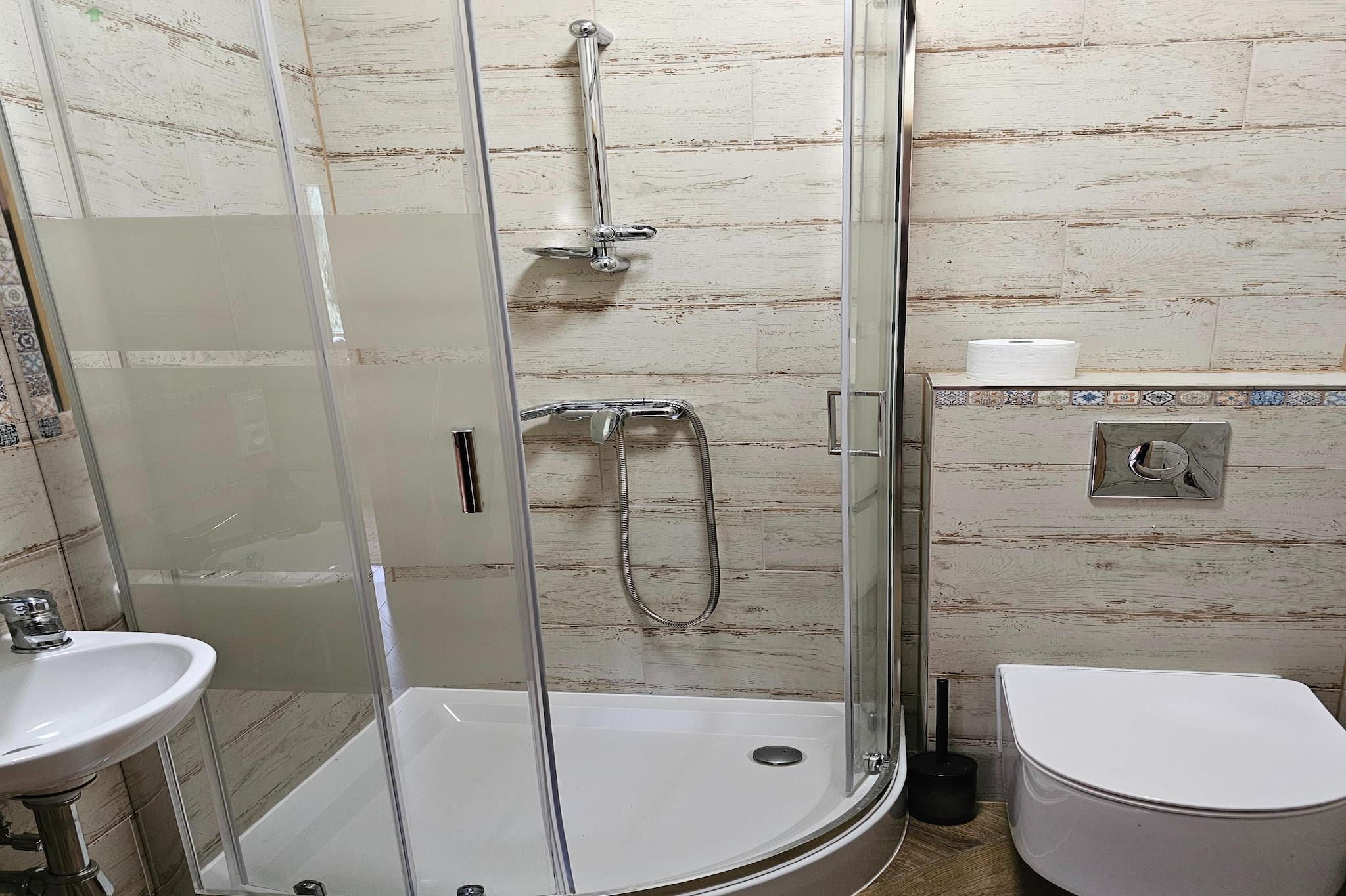Et-etagers sommerhus direkte ved bredden af Wierzchowo-søen (beskyttet landskabsområde). På den private ejendom er der i alt 2 ens huse, hvis gæster råder over 1 hektar indhegnet område (inklusive 200 m privat strand ved søen). Det komfortable feriehus byder på en rummelig stue (pejs, satellit-tv, sovesofa, stort bord) med direkte udsigt over søen. Stuen er forbundet med et veludstyret køkken. Huset har 3 separate soveværelser med dobbeltsenge og 2 badeværelser med bruser (det ene har også en vaskemaskine). Feriehuset har en overdækket terrasse med et sæt havemøbler. Udsigten over søen fra terrassen er lige så malerisk som fra stuen. Huset opvarmes af en pejs i stuen (dette er en effektiv varmekilde). Trådløst internet er tilgængeligt. Der er grill og fiskemole ved den private strand, og der ligger flere robåde fortøjet. Båden er gratis at bruge, men en reservation med ejeren er påkrævet. Mod et ekstra gebyr kan du leje en bådmotor. Du kan også leje cykler hos ejeren af ejendommen. Inkluderet i prisen for dit ophold: sengelinned, håndklæder, el- og vandforbrug, brænde, slutrengøring, internet, parkering. Prisen inkluderer også brug af robåd, men dette kræver forudgående reservation. Barnestol til rådighed gratis efter forudgående reservation. Wierzchowo-søen er et paradis for fiskeentusiaster. Reservoiret har et areal på 750 hektar. Vandet i den er krystalklart, så søen er også særdeles indbydende for badeentusiaster. Ejeren af ejendommen bor i centrum af landsbyen Grabczyn, ca. 3 km fra søen. Faciliteterne på stedet omfatter en tennisbane og bordtennisbord mod et tillægsgebyr.