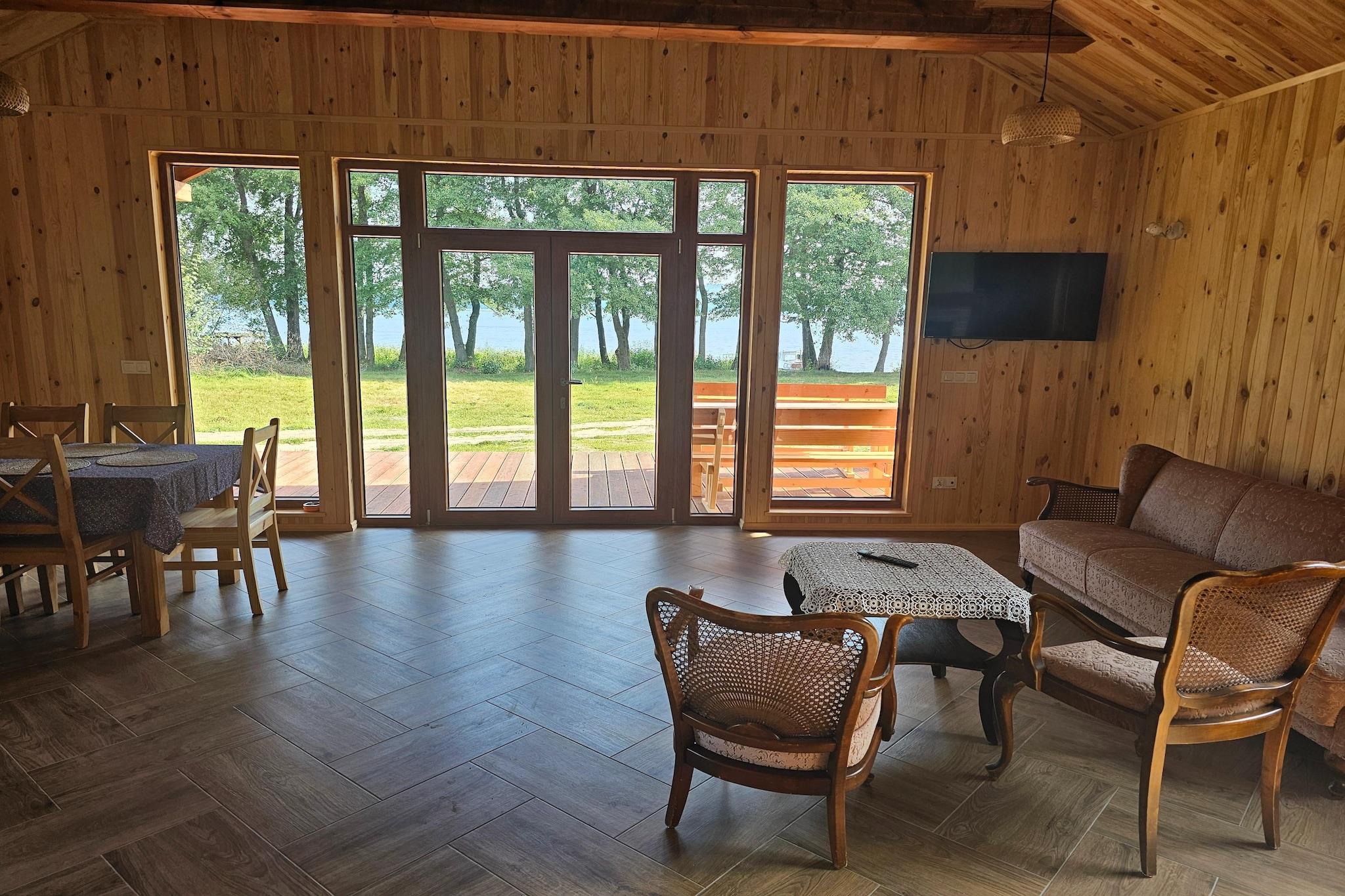 Et-etagers sommerhus direkte ved bredden af Wierzchowo-søen (beskyttet landskabsområde). På den private ejendom er der i alt 2 ens huse, hvis gæster råder over 1 hektar indhegnet område (inklusive 200 m privat strand ved søen). Det komfortable feriehus byder på en rummelig stue (pejs, satellit-tv, sovesofa, stort bord) med direkte udsigt over søen. Stuen er forbundet med et veludstyret køkken. Huset har 3 separate soveværelser med dobbeltsenge og 2 badeværelser med bruser (det ene har også en vaskemaskine). Feriehuset har en overdækket terrasse med et sæt havemøbler. Udsigten over søen fra terrassen er lige så malerisk som fra stuen. Huset opvarmes af en pejs i stuen (dette er en effektiv varmekilde). Trådløst internet er tilgængeligt. Der er grill og fiskemole ved den private strand, og der ligger flere robåde fortøjet. Båden er gratis at bruge, men en reservation med ejeren er påkrævet. Mod et ekstra gebyr kan du leje en bådmotor. Du kan også leje cykler hos ejeren af ejendommen. Inkluderet i prisen for dit ophold: sengelinned, håndklæder, el- og vandforbrug, brænde, slutrengøring, internet, parkering. Prisen inkluderer også brug af robåd, men dette kræver forudgående reservation. Barnestol til rådighed gratis efter forudgående reservation. Wierzchowo-søen er et paradis for fiskeentusiaster. Reservoiret har et areal på 750 hektar. Vandet i den er krystalklart, så søen er også særdeles indbydende for badeentusiaster. Ejeren af ejendommen bor i centrum af landsbyen Grabczyn, ca. 3 km fra søen. Faciliteterne på stedet omfatter en tennisbane og bordtennisbord mod et tillægsgebyr.