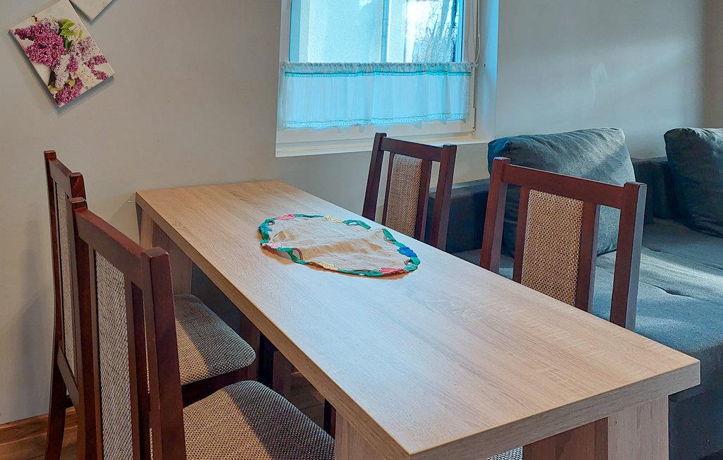Huset ligger idyllisk placeret ud til søen Jezioro Wilcze, hvor I kan bade og nyde solen om sommeren. Hvis I har fiskeudstyret med hjemmefra, kan I måske også være så heldige at fange en god, stor fisk til aftenmaden. Tag et spil dart eller nyd en alenestund med en bog i skyggen af ??et træ, mens børnene løber rundt på græsplænen. Området lægger også op til en cykelferie, hvor I kan køre ud gennem skovene og forbi andre flotte søer.