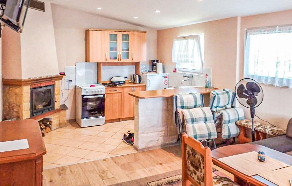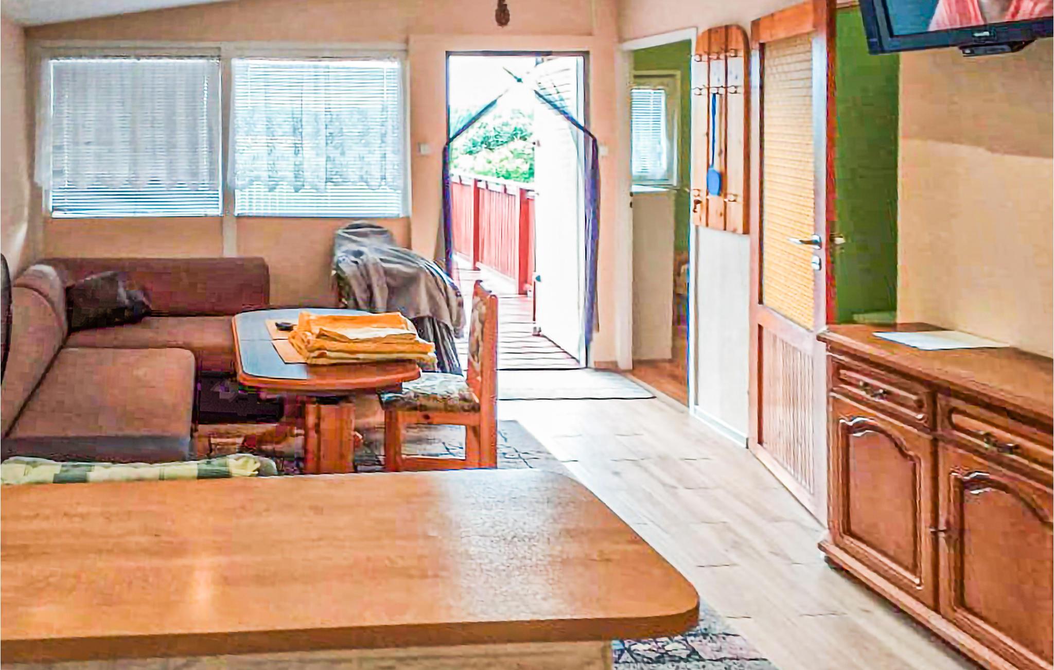 Jeres feriehus ligger i et lille feriehuskompleks og tilbyder enkle indkvarteringsmuligheder til en fredelig ferie. Den store, fælles grund skaber et afslappende miljø. find jer til rette i opholdsstuen, der er møbleret med blandede møbler. Brug pejsen til at skabe en hyggelig atmosfære på kølige aftener. Tilbered måltider i det lille køkken, og spis derefter sammen i den åbne stue.