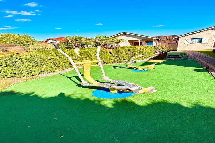 Tekøkken(kogeplade(Komfur med to kogeplader, glaskeramisk), elkedel, brødrister, kaffemaskine, køle-fryseskab), stue / spisestue(Fjernsyn(parabol, Tyske TV-kanaler), sofahjørne), soveværelse(dobbeltseng), soveværelse(køjeseng), badeværelse(bruser, toilet), grill, babybadekar, vaskemaskine, varme(elektrisk), havemøbler, parkering, trampolin, swimmingpool(deles med andre gæster, udendørs, overdækket, 14 x 3 m.), sandkasse, rutsjebane, barnestol, Gyngestativ, baby crib(free)