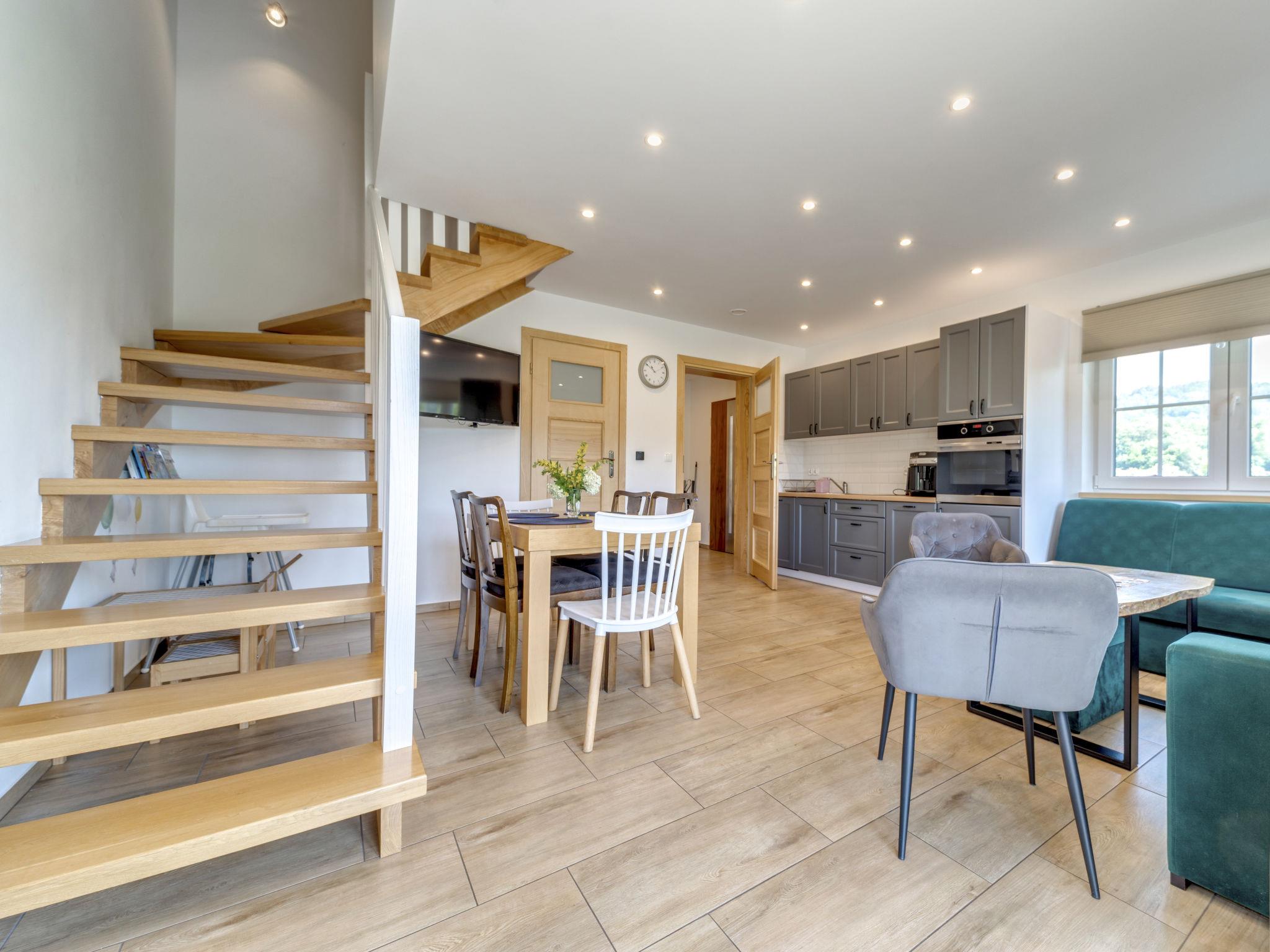 3-room house 64 m2 on 2 levels. Partly with sloping ceilings, stylish furnishings: living/dining room with 1 double sofabed, dining table and satellite TV. Open kitchen (oven, dishwasher, 2 ceramic glass hob hotplates, freezer). Shower/WC. Upper floor: 1 room with 1 bed (80 cm, length 200 cm), 1 double bed (140 cm, length 200 cm). 1 room with 1 sofabed (120 cm, length 200 cm), 1 double bed (160 cm, length 200 cm). Shower/WC. Gas heating. Balcony 3 m2, terrace 8 m2. Barbecue, deck chairs (8). View of the mountains. Facilities: Internet (WiFi). Please note: smoke alarm.
