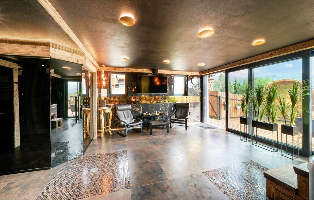 Lejligheden i stueetagen kan rumme op til 4 personer med direkte adgang til haven med havemøbler og liggestole og en central udsigt over de vestlige Tatraer. Indgangen til lejligheden sker via hovedtrappen. Et komplet wellness-område, en legeplads for børn, en udsigtsplatform med grill, en udsigtsplatform med liggestole og gynger, et billardrum og en parkeringsplads er alt sammen tilgængeligt for gæsterne under deres ophold. Om sommeren kan I bruge cykler gratis