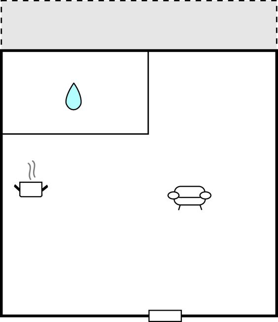 Køkkenet har v/k vand