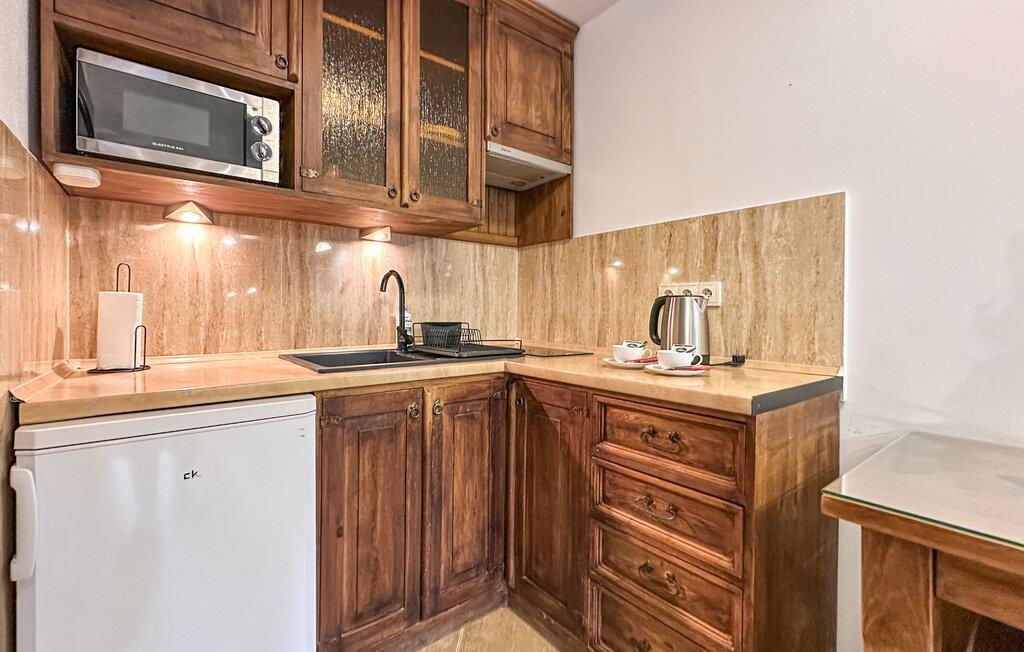 Opholdsstue/køkken - 1 Soveplads. (Enkeltseng(e)). 2 Sovepladser. (Dobbeltseng(e)).