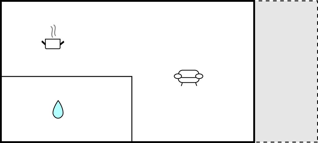 Opholdsstue/køkken - 1 Soveplads. (Enkeltseng(e)). 2 Sovepladser. (Dobbeltseng(e)).