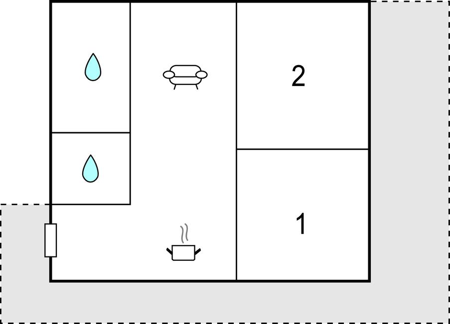 Opholdsstue/køkken - 2 Sovepladser. (Sofa, madras eller lignende).