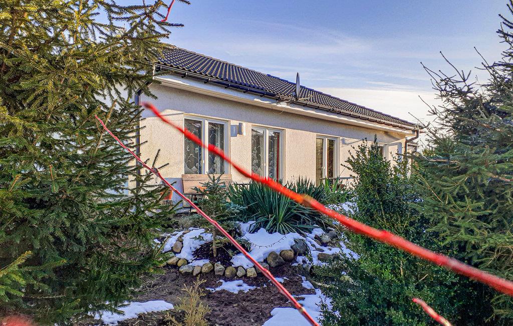 Feriehuset er praktisk og komfortabelt indrettet og ligger i en landskabspark nær Wyspowo-søen. Fra det store køkken med lys stue har I adgang til den smukke have. Der er også 3 soveværelser og et badeværelse.
