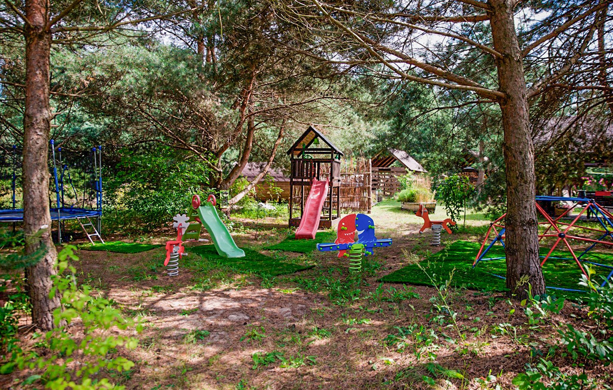 Det fælles grundareal tilbyder mange aktiviteter for både store og små: Der er en tøndesauna, en whirlpool, en legeplads med forskellige legeredskaber og en volleyballbane. Bålpladsen indbyder til hyggelige aftener under åben himmel. I området lokker den nærliggende Wda-flod med muligheder for fiskeri, kanosejlads og afslappede vandreture langs vandet. Udforsk den rolige natur omkring Zur, og oplev den polske landskabs skønhed.