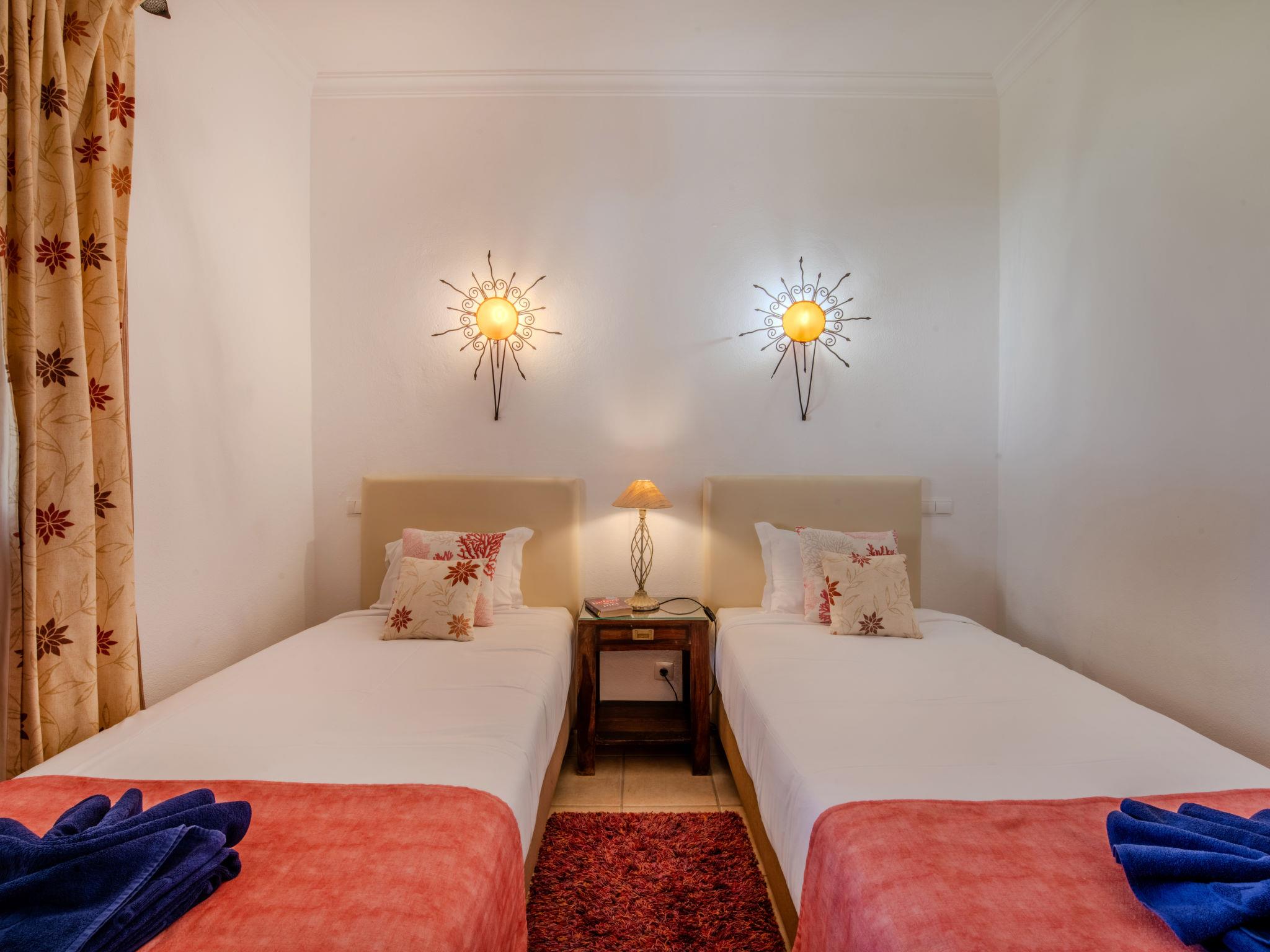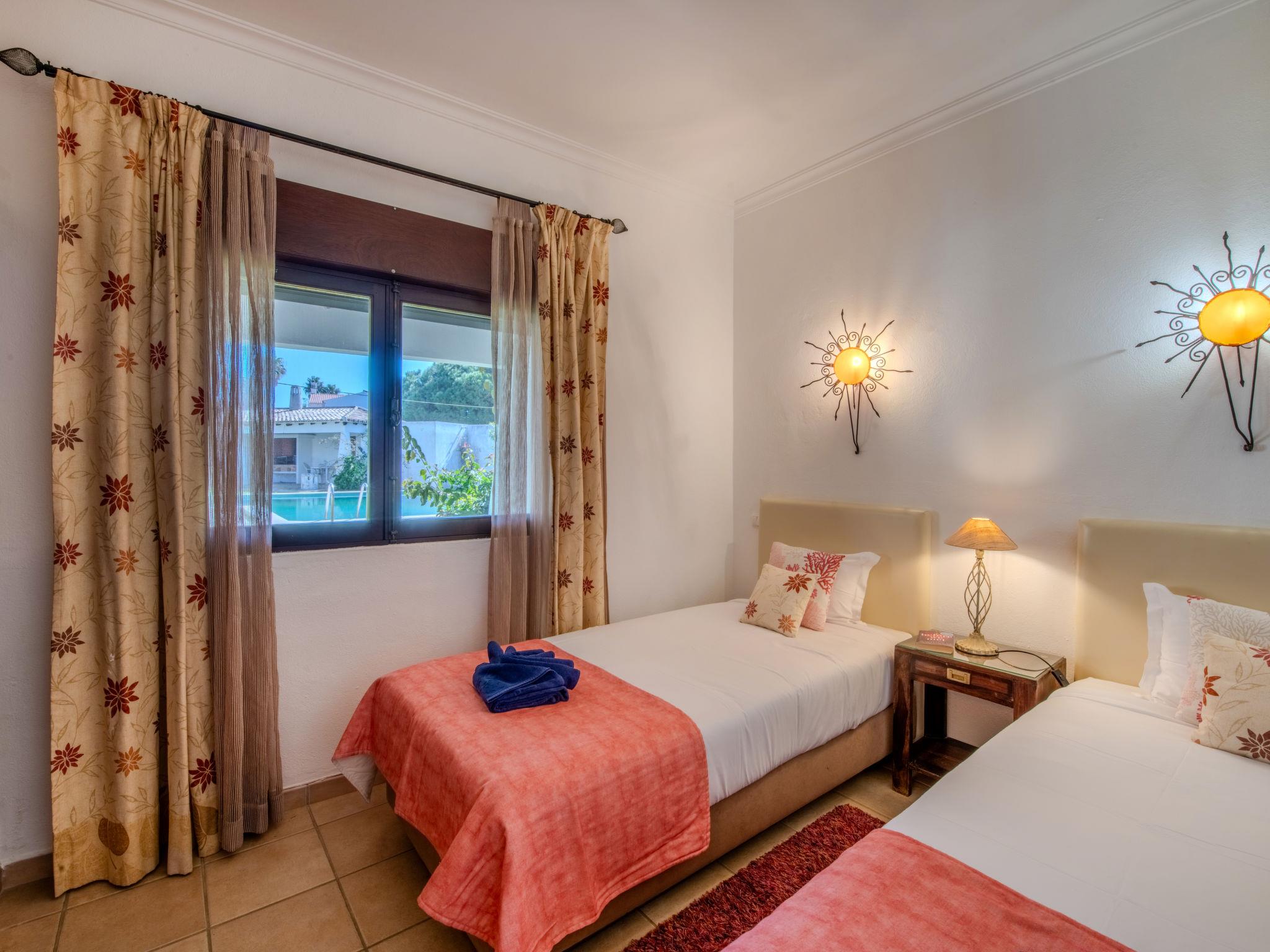 Sesmarias-Albufeira: Very cosy, comfortable villa "Rosa", detached, renovated in 2023. Outside the resort, 4.6 km from the centre of Albufeira, residential area (villas), 1.1 km from the sea. Private: swimming pool angular (5 x 8 m, depth 90 - 190 cm, seasonal availability: 01.Jan. - 31.Dec.). In the house: WiFi, air conditioning, washing machine. Grocery 900 m, supermarket 1.7 km, shopping centre 6.4 km, restaurant 500 m, bar 900 m, bakery 2.2 km, café 750 m, pedestrian zone 800 m, bicycle rental 5 km, bus stop 750 m, sandy beach "Praia da Coelha" 1.1 km. Marina 2.4 km, golf course (18 hole) 4.6 km, surf school 1.8 km, tennis 10 km, minigolf 7 km, riding stable 5.8 km, children's playground 6.8 km, fishing possibilities 2.3 km. Nearby attractions: Praça da Cidade Velha de Albufeira 4.6 km, Parque aventura 9.2 km, Aqualand Algarve 11.2 km, Zoomarine 8.9 km, Bowling Marina Albufeira 2.6 km, Algarve Shopping 8.9 km. Hiking paths: Lagoa dos Salgados 8.2 km. Please note: car recommended. Suitable for families. The owner does not accept any youth groups. Loading and unloading of baggage is possible at the holiday house.