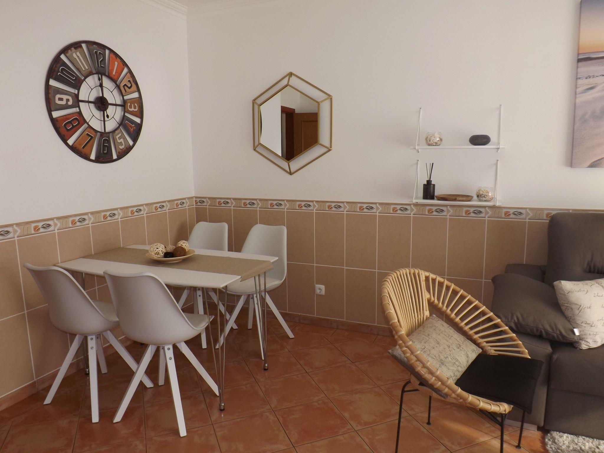 1-bedroom apartment with 1 bathroom, kitchen, terrace, in a condominium with swimming pool and located 6 km west of Albufeira, in Olhos de Agua 600m from the town centre and 800m from the beach. This is a flat in a quiet area, within walking distance to all amenities such as restaurants, beaches, bars, shops, pharmacy and banks. The flat is located on the ground floor of a building with 3 floors 1 bedroom, 1 with double bed, access to the terrace 1 bathroom with shower, living room with dining area and direct access to the furnished terrace with BBQ, equipped with a sofa bed, TV. Fully equipped kitchen with washing machine, dishwasher and cooker, fridge, hot water tank, microwave, blender, toaster, kettle and coffee machine (filter + capsules). Swimming pool