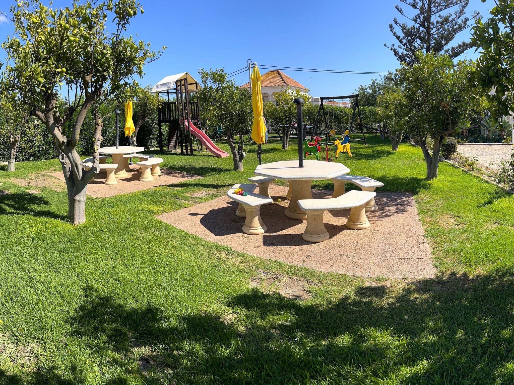 Outside you have the lovely patio furnished with tables and chairs for outdor dining. There is a area outside where you have a communal washing machine. Sharing Swimming pools divided into shallow end for children´s and deeper part for adults, 3 BBQ, Pic nic areas, Playground area, Gardens, Snooker/Pool table and Parking.