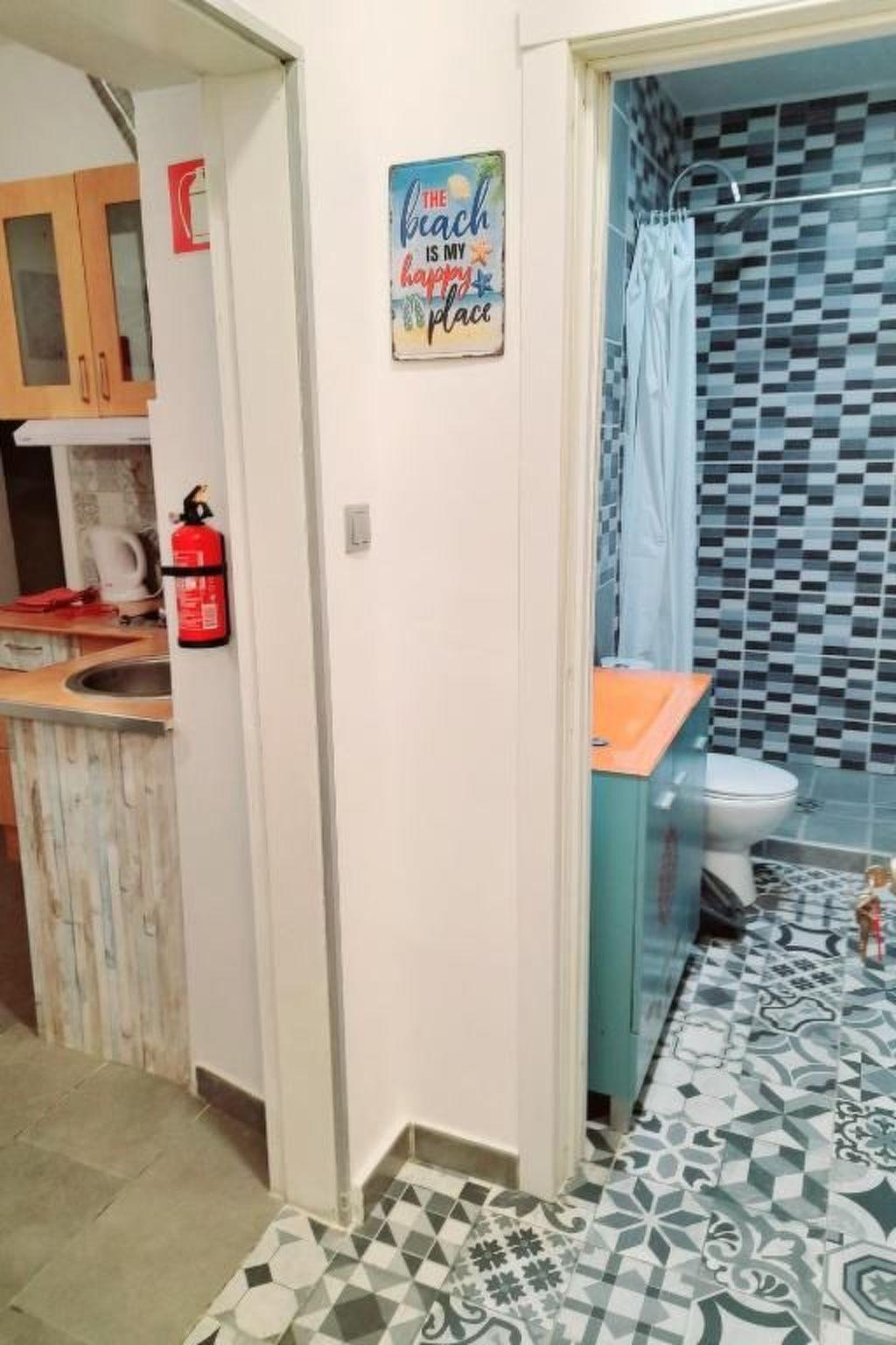 Inside, the flat has been arranged with functionality and comfort in mind. It has a bedroom that guarantees a restful rest thanks to its darkening capacity, ideal for those days when you prefer to sleep a little longer. It is also equipped with essentials such as a fan to keep the place cool, as well as a conventional coffee machine and an Italian coffee maker so you can enjoy your morning coffee just the way you like it. A kettle completes the selection of small appliances at your disposal, ensuring you have everything you need for a comfortable stay.