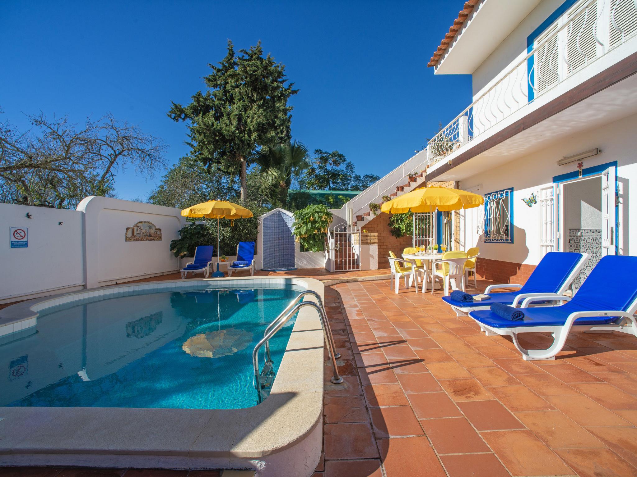 Very cosy, comfortable villa "Fernandes", surrounded by trees and fields. Outside the resort, in the district Albufeira, in a quiet position, 3.4 km from the sea. Private: property 1'000 m2 (fenced), swimming pool angular (9 x 4 m, depth 90 - 200 cm, seasonal availability: 01.Jan. - 31.Dec.). Outdoor shower, garden furniture, barbecue. In the house: WiFi, table tennis, air conditioning, washing machine. Parking on the premises. Shop 4.1 km, grocery 2.3 km, supermarket 1.6 km, restaurant 2.3 km, bar 4.1 km, bakery 1.6 km, café 1.2 km, internet café 4.1 km, pedestrian zone 4.1 km, pub garden 4.1 km, bus stop 950 m, sandy beach "Praia do Peneco" 3.4 km. Marina 4.8 km, golf course (18 hole) 7.7 km. Nearby attractions: Zoomarine 11.6 km, Marina de Albufeira 4.8 km, Aqualand 12.6 km, Fiesa 10 km, Algarve Shopping 3.2 km, Krazy World 13.9 km. Well-known lakes can easily be reached: Lagoa dos Salgados 11.2 km. Hiking paths: Monchique 53 km. Please note: car recommended. Suitable for families. Groups of teenagers on request only. Loading and unloading of baggage is possible at the holiday house.