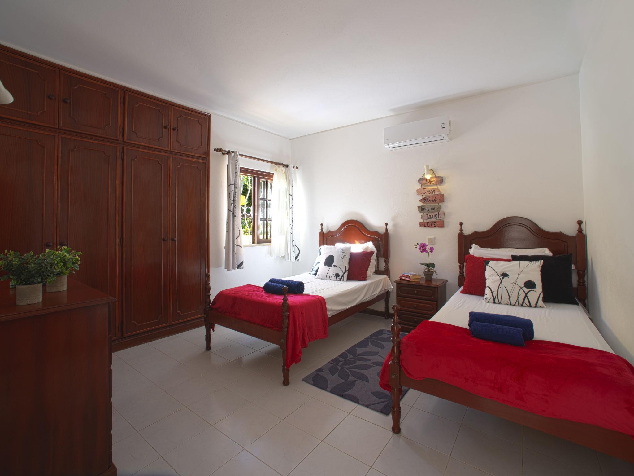 Very cosy, comfortable villa "Maria", surrounded by trees and fields. Outside the resort, in the district Albufeira, in a quiet position, 3.4 km from the sea. Private: property 1'000 m2 (fenced), swimming pool angular (9 x 4 m, depth 90 - 200 cm, seasonal availability: 01.Jan. - 31.Dec.). Outdoor shower, garden furniture, barbecue. In the house: WiFi, table tennis, air conditioning, washing machine. Parking on the premises. Shop 4.1 km, grocery 2.3 km, supermarket 1.6 km, restaurant 2.3 km, bar 4.1 km, bakery 1.6 km, café 1.2 km, internet café 4.1 km, pedestrian zone 4.1 km, pub garden 4.1 km, bus stop 1 km, sandy beach "Praia do Peneco" 3.4 km. Marina 4.8 km, golf course (18 hole) 7.7 km. Nearby attractions: Zoomarine 11.6 km, Marina de Albufeira 4.8 km, Aqualand 12.6 km, Fiesa 10 km, Algarve Shopping 3.2 km, Krazy World 13.9 km. Well-known lakes can easily be reached: Lagoa dos Salgados 11.2 km. Hiking paths: Monchique 53 km. Please note: car recommended. Suitable for families. Groups of teenagers on request only. Loading and unloading of baggage is possible at the holiday house.