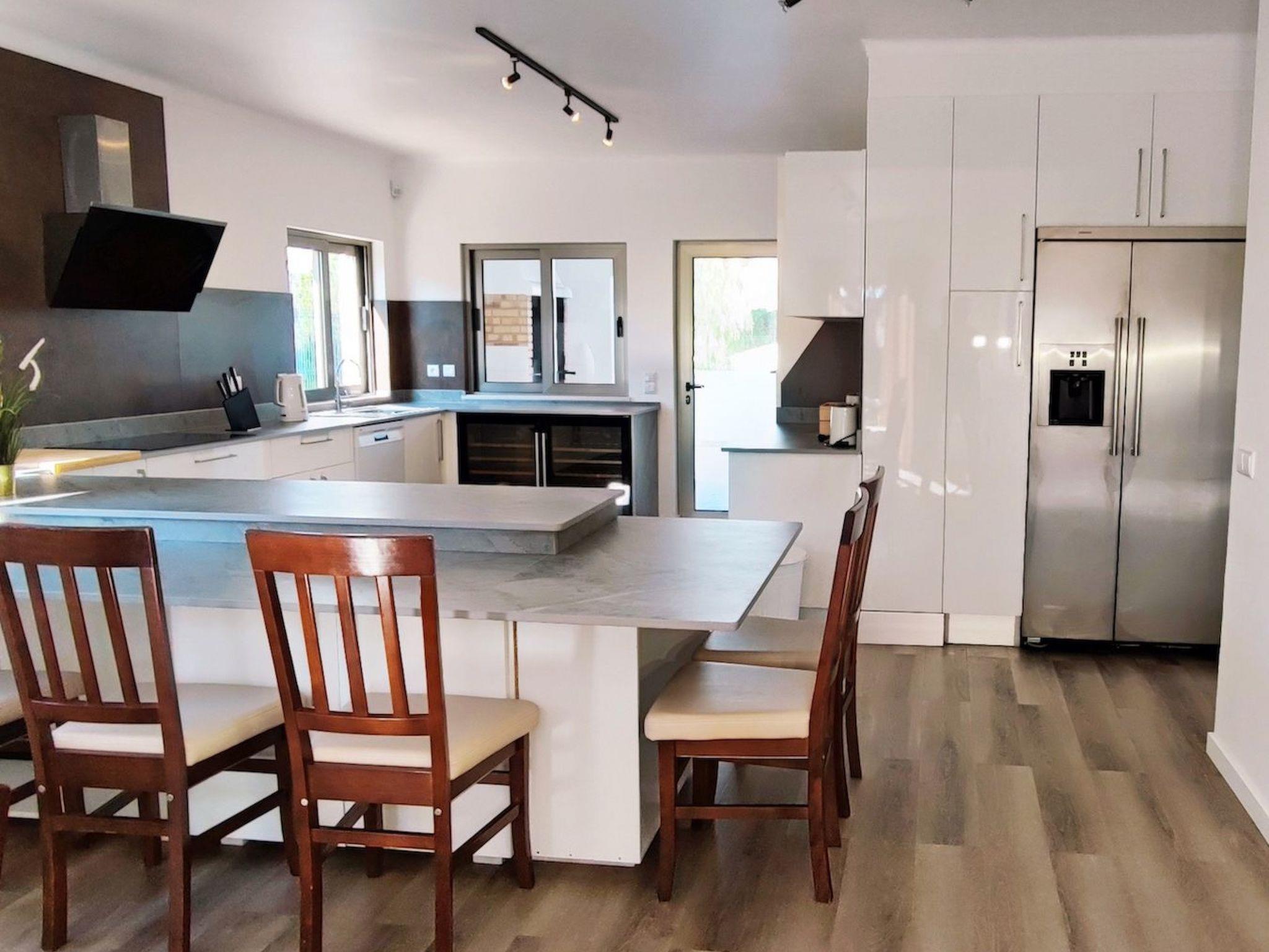 Safety: Main gate is automatic and the surrounding area is fenced off. Outside: Large patio set with garden furniture,Barbecue area, table and chairs including sun loungers to enjoy the sun, superb swimming pool (more or less 11mx5) with and shades, terrace overlooking the pool and patio area.The house faces south so it has sun all day long.