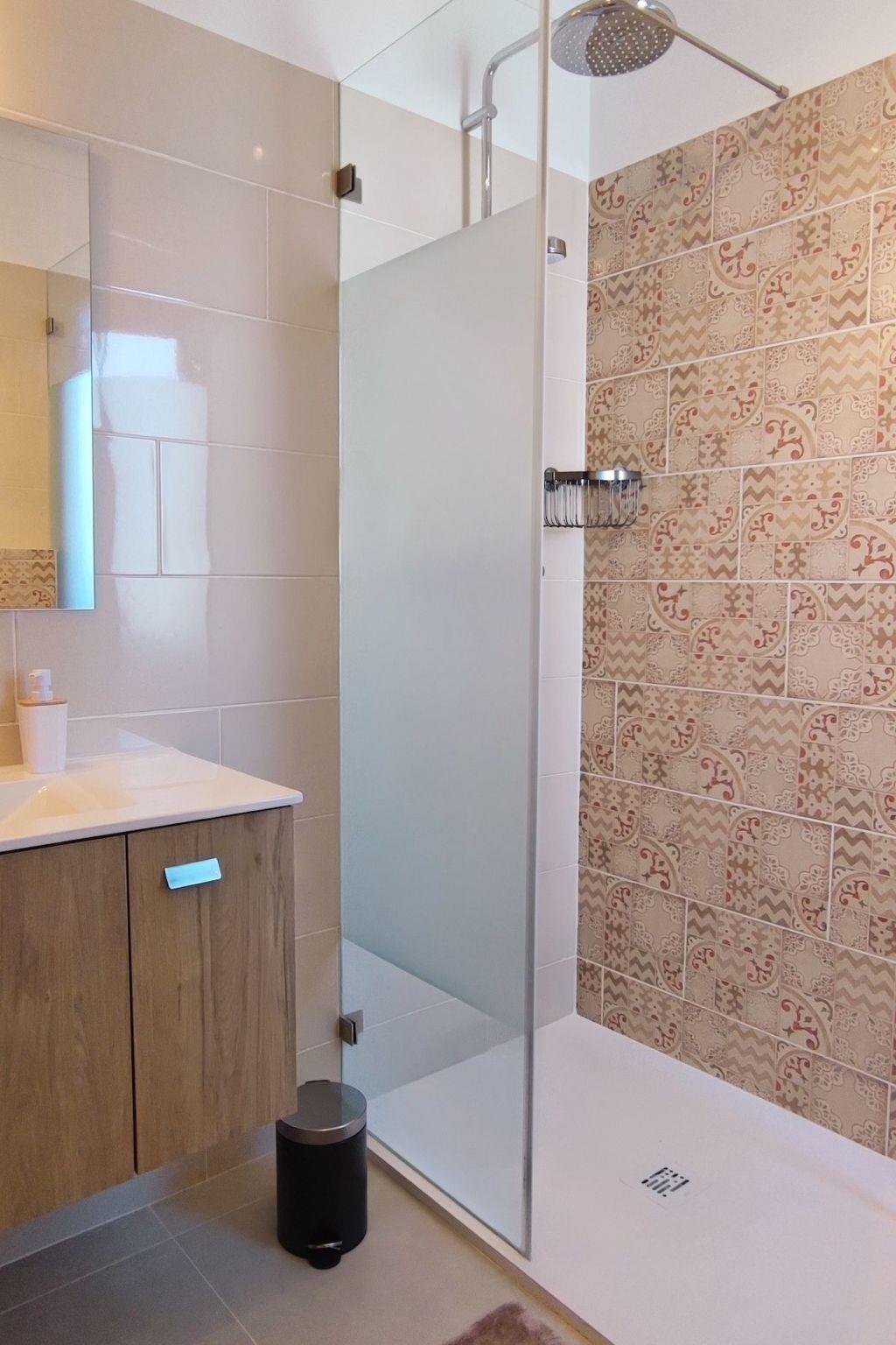 The ground floor is occupied by a Suite - a spacious bedroom with a double bed and a en-suite bathroom (possibility to have extra bed) with a terrace. The Kitchen is equipped with everything you need for your daily meals (Oven, microwave, refrigerator, kettle, toaster and a dishwasher machine).