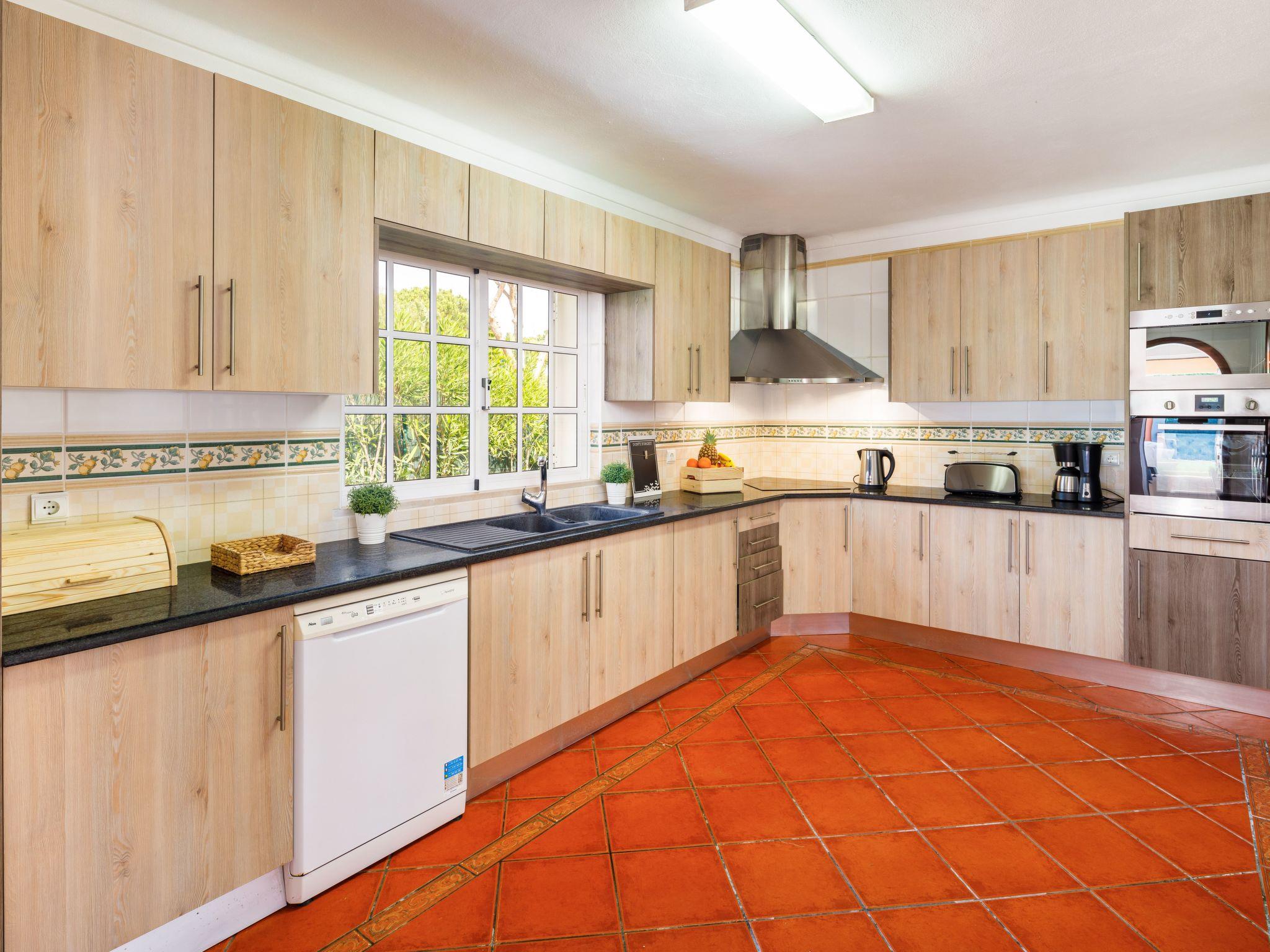 First floor: 1 bedroom 2 with twin beds, air conditioning, closet and private bathroom. 1 double bedroom with fitted closets, large bathroom with shower and bath and air conditioning. 1 double bedroom with fitted closets, air conditioning and large en-suite bathroom. All rooms have access to the outside garden and swimming pool. Equipped kitchen. Living room/dining room with a table for up to 12 people, richly decorated with a fireplace and three large glass doors giving access to the terrace, gardens and pool.