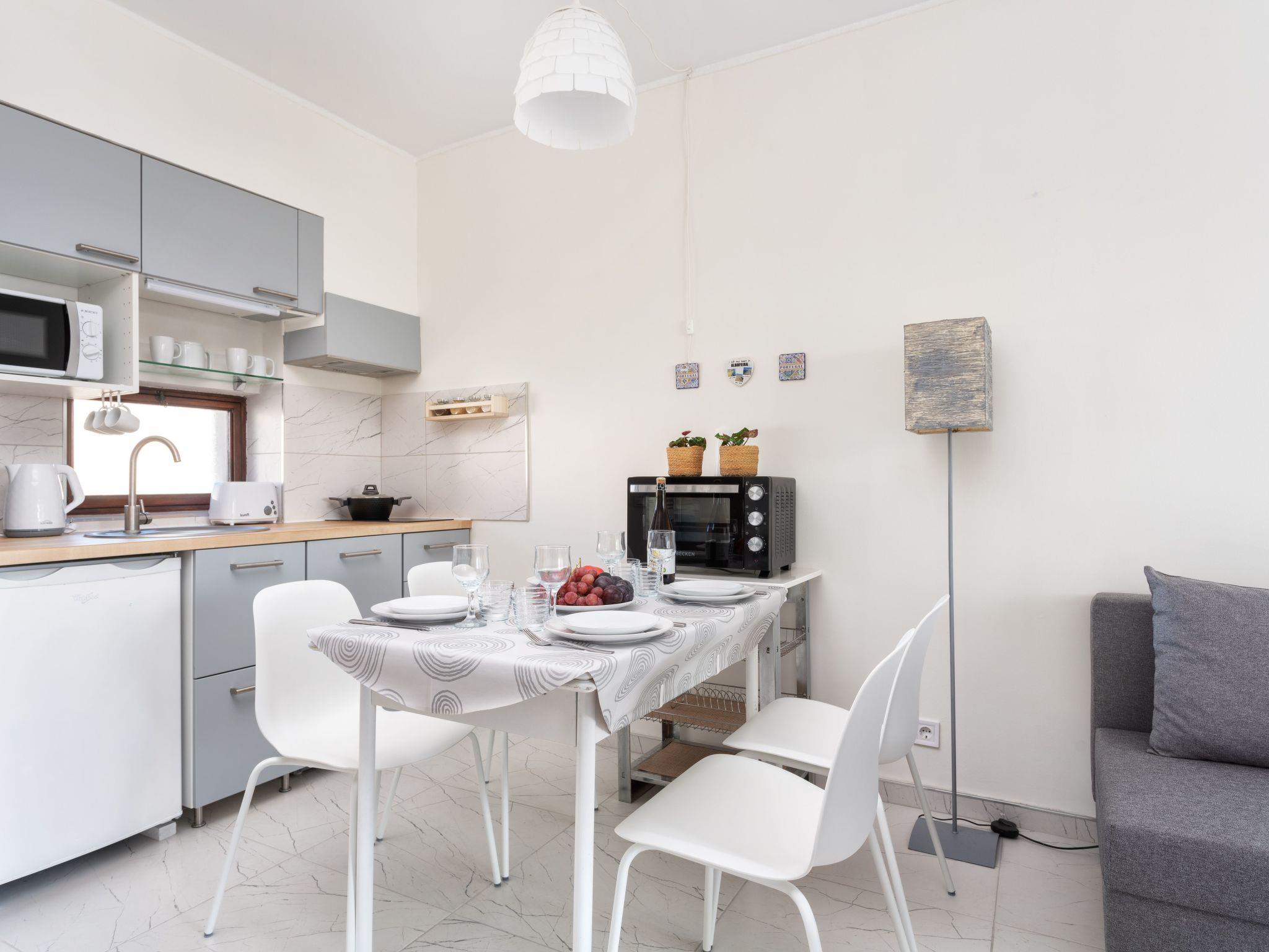 Forget your worries! The spacious studio features a double bed (160 x 200 cm) and a sofa bed (140 x 200 cm), a 40" Smart TV (YouTube, Netflix, and over 160 satellite channels), and a magnificent sunny terrace overlooking the old town. Dining tables are available for perfect evenings under the stars.