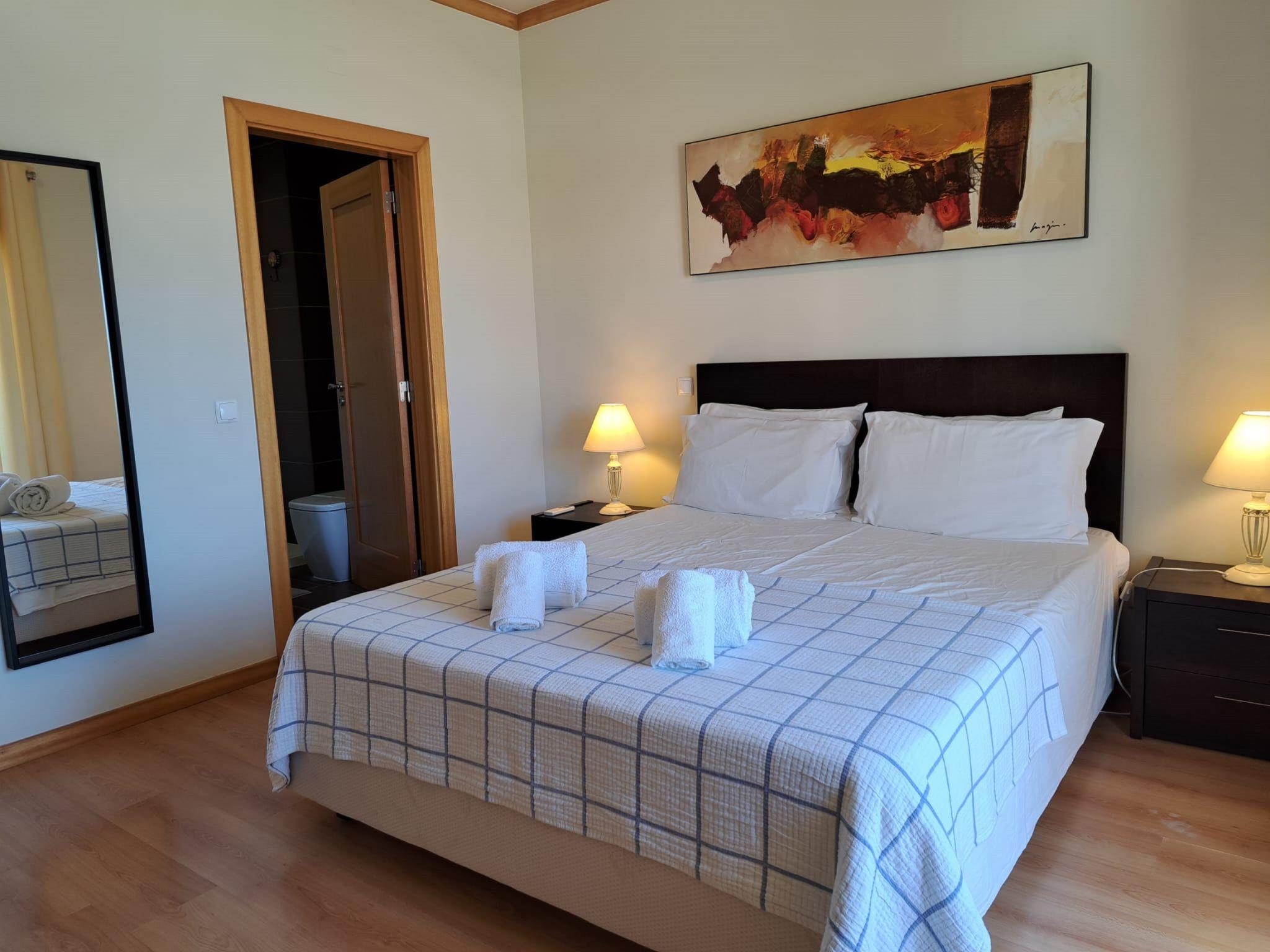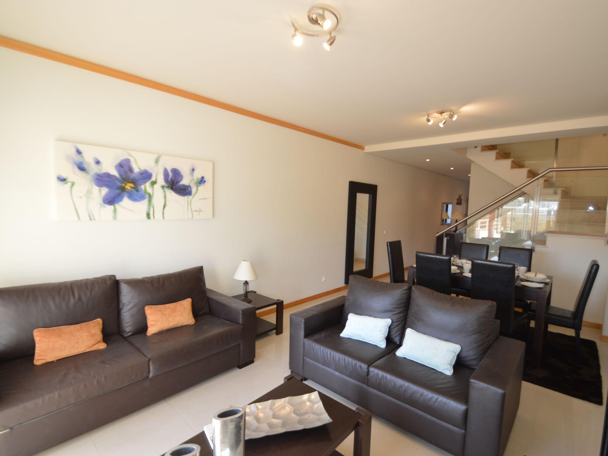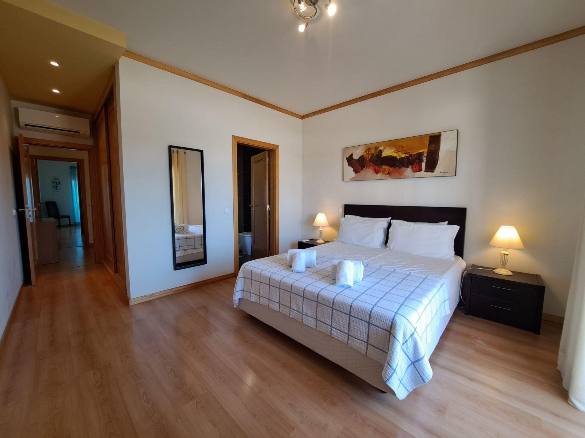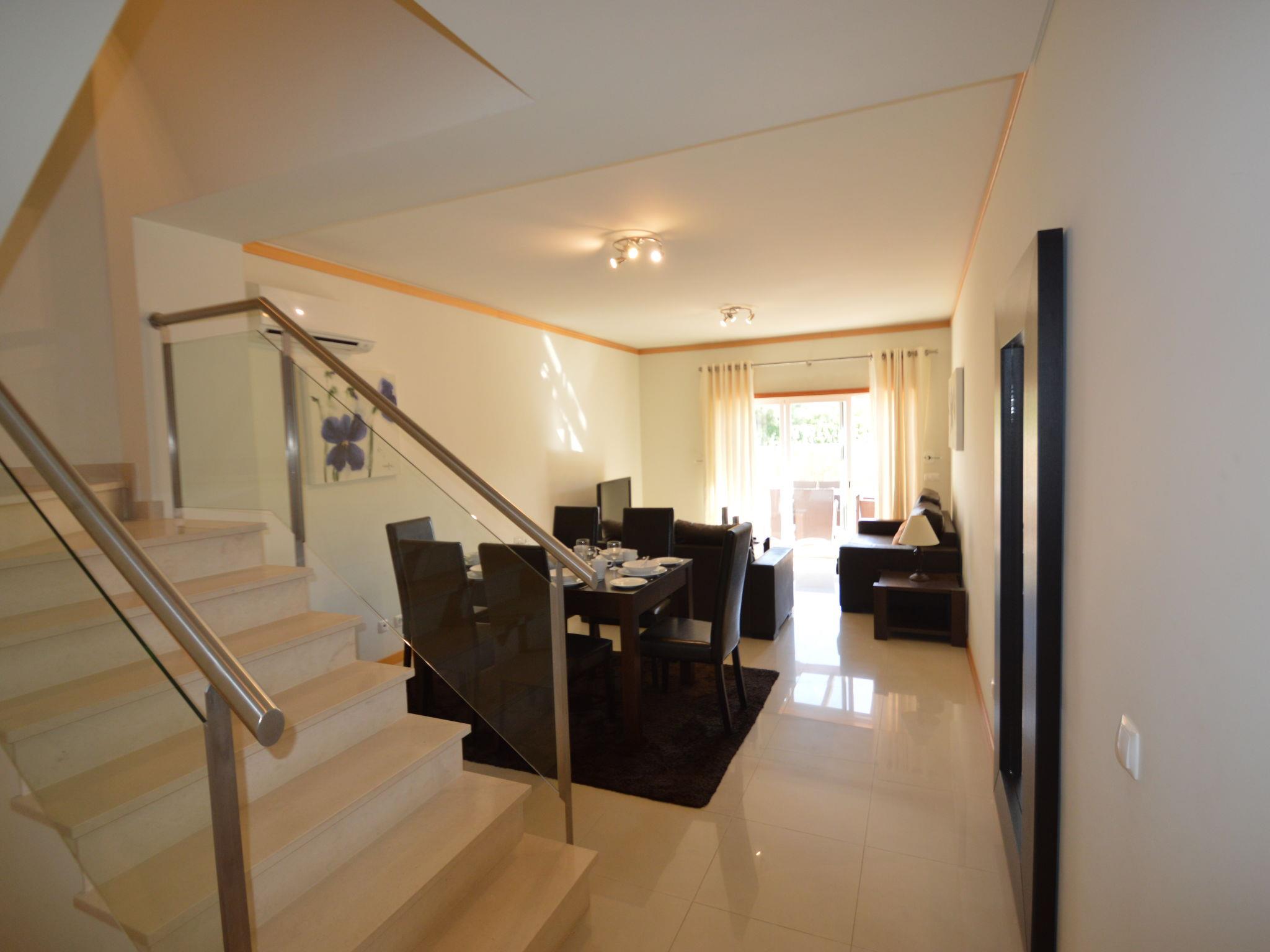 Very modern, cosy terraced house "Cerro Aguia AM V2 - VIP Properties". Outside the resort, 5.6 km from the centre of Albufeira, residential area (villas), 2.6 km from the sea. For shared use: swimming pool kidney-shaped (4 x 9 m, depth 80 - 180 cm, seasonal availability: 01.Jan. - 31.Dec.). Children's pool, outdoor shower. In the house: WiFi, air conditioning, washing machine, drying room. Parking at the house. Grocery 550 m, supermarket 500 m, shopping centre 5.4 km, restaurant 650 m, bar 1.1 km, café 550 m, bicycle rental 2.7 km, bus stop 700 m, railway station 9 km, sandy beach "Praia do Peneco" 2.6 km. Marina 3.9 km, golf course (18 hole) 5.5 km, surf school 4.9 km, minigolf 6.1 km, riding stable 5.6 km, children's playground 3.8 km, fishing possibilities 3.9 km. Nearby attractions: Adventure Mini Golfe Park 6.1 km, Zoomarine 7 km, Algarve Shopping 8 km, Krazy World 13.8 km, Sand City 17.1 km, Faro Airport 44 km. Well-known lakes can easily be reached: Lagoa dos Salgados 8.6 km. Please note: car recommended, no lift. Groups of teenagers on request only. Loading and unloading of baggage is possible at the holiday house. Young groups under 25 y.o. will be charged an extra deposit per person on spot.