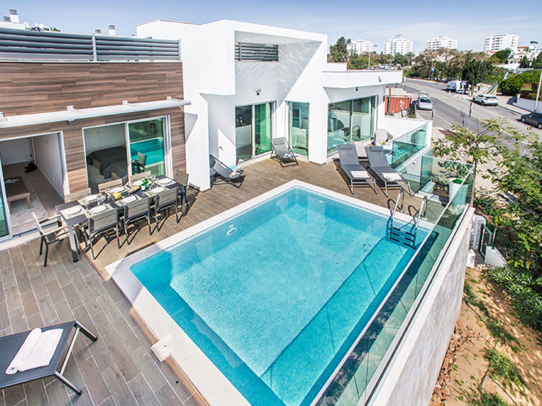 "Sónia Lote 69 - VIP Properties", 4-room house 245 m2. Spacious and bright, very comfortable and modern furnishings: living/dining room with cable TV, international TV channels, flat screen, air conditioning and forced-air heating. Exit to the terrace, to the swimming pool. 1 room with 1 french bed (160 cm, length 200 cm), air conditioning and forced-air heating. 1 room with 1 french bed (160 cm, length 200 cm), bath/WC, air conditioning and forced-air heating. Exit to the terrace, to the swimming pool. 1 room with 2 beds (90 cm, length 200 cm), air conditioning and forced-air heating. Exit to the terrace, to the swimming pool. Open kitchen (oven, dishwasher, 4 ceramic glass hob hotplates, toaster, kettle, microwave, freezer, cooking island). Exit to the terrace, to the swimming pool. Shower/WC. Terrace furniture, balcony furniture, barbecue, deck chairs (4). Panoramic view of the sea and the resort. Facilities: washing machine, children's high chair, baby cot for up to 2 year olds (extra). Internet (WiFi, free). Parking at the house. Suitable for families. Heated pool from October to April. 111329/AL
