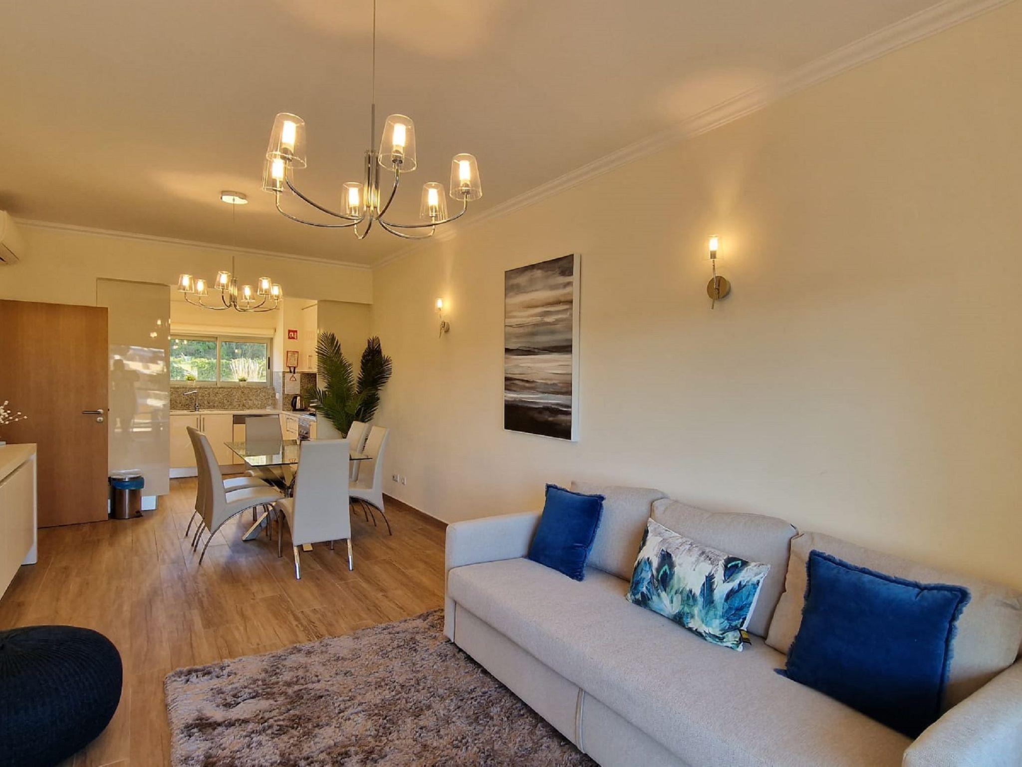 Very cosy, comfortable apartment block "Jardins Marina T2 - VIP Properties". Outside the resort, 3.2 km from the centre of Albufeira, residential area (villas), 1.9 km from the sea. For shared use: beautiful garden to relax, swimming pool (5 x 10 m, depth 90 - 180 cm, seasonal availability: 01.Jan. - 31.Dec.). Children's pool, outdoor shower. In the house: WiFi, lift, air conditioning, washing machine. Shop 2.4 km, grocery 600 m, supermarket 1.4 km, shopping centre 2.4 km, restaurant, bar 600 m, bakery 1.4 km, café 600 m, pedestrian zone 650 m, bicycle rental 8.2 km, bus stop 350 m, sandy beach "Praia do Peneco" 2 km. Marina 650 m, golf course (18 hole) 6.3 km, surf school 2.2 km, tennis 3.7 km, children's playground 1.8 km. Nearby attractions: Zomarine 10 km, Aqualand 14 km, Krazy World 16 km, Sand City 18 km, Algarve Shopping 10 km, Faro Airport 44 km. Hiking paths: Lagoa dos Salgados 10 km. Please note: car recommended. Suitable for families. Young groups under 25 y.o. will be charged an extra deposit per person on spot.