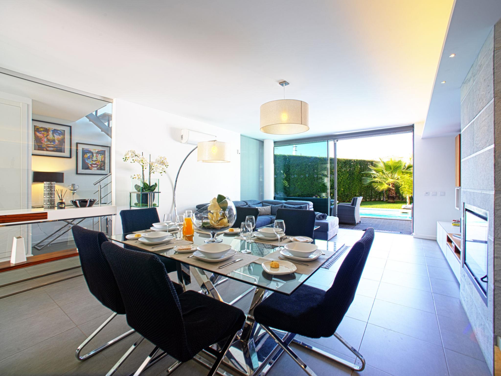 "Pires - VIP Properties", 4-room house 150 m2. Comfortable and cosy furnishings: living/dining room with cable TV, international TV channels, flat screen, air conditioning and forced-air heating. Exit to the terrace, to the swimming pool. Kitchen (oven, dishwasher, 4 ceramic glass hob hotplates, toaster, kettle, microwave, freezer, electric coffee machine). Sep. WC. Upper floor: 2 rooms, each room with 1 french bed (160 cm, length 200 cm), air conditioning and forced-air heating. Exit to the terrace. 1 room with 1 french bed (160 cm, length 200 cm), bath/WC, air conditioning and forced-air heating. Exit to the balcony. Shower/WC. Terrace furniture, barbecue, deck chairs (4). View of the resort. Facilities: washing machine, iron, children's high chair, baby cot for up to 2 year olds (extra), hair dryer. Internet (WiFi, free). Parking at the house. Suitable for families. 91647/AL