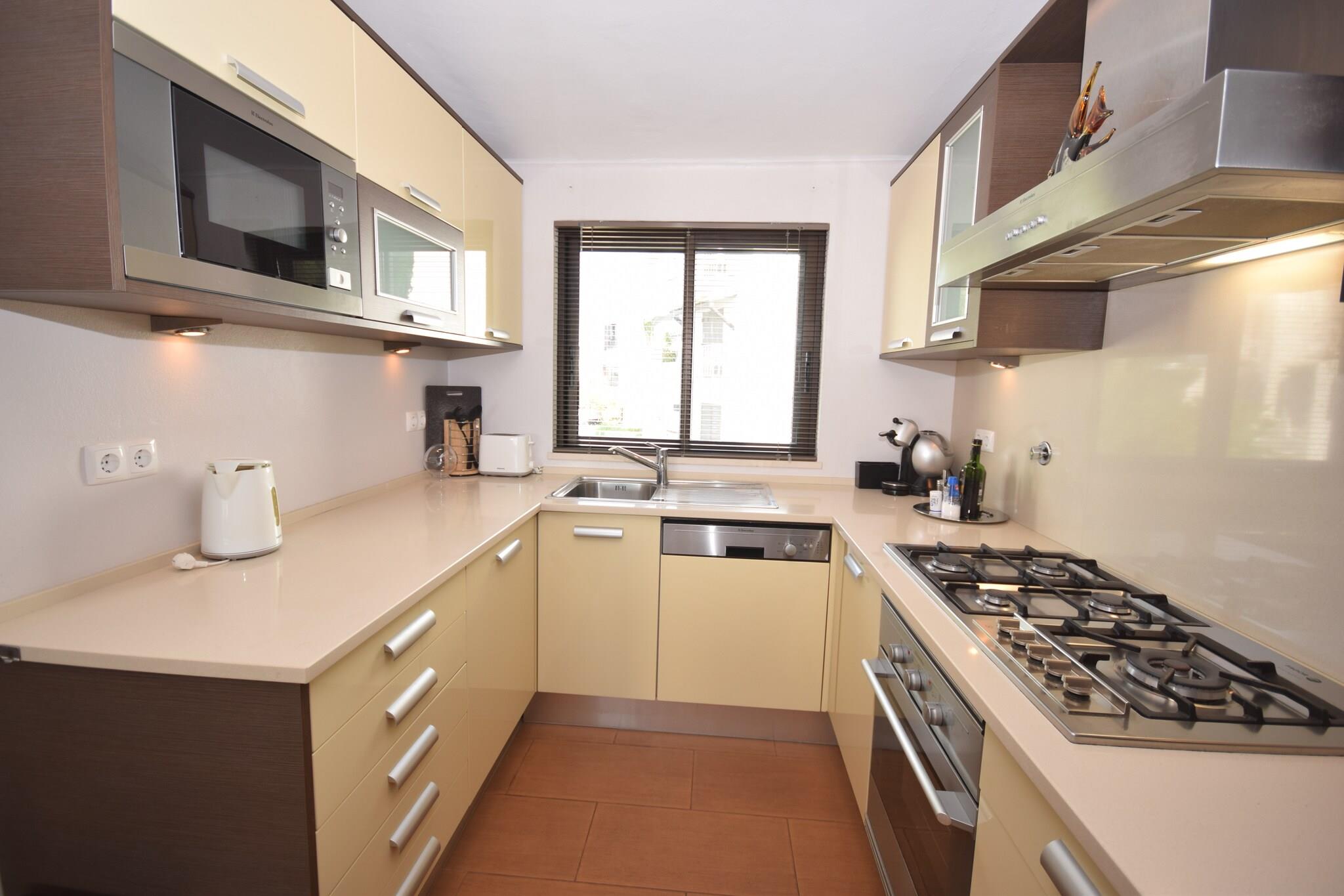 På 1. etage: (åbent køkken(elkedel, brødrister, komfur(Komfur med fem kogeplader), emhætte, kaffemaskine(kopper), ovn, mikrobølgeovn, opvaskemaskine , køle-fryseskab), stue / spisestue(Fjernsyn, spisebord, hyggepejs, sofahjørne, DVD-afspiller, balkon), soveværelse(2x enkeltseng(90 x 200 cm), enkeltfoldeseng, varme(elektrisk)), soveværelse(2x enkeltseng(90 x 200 cm), varme(elektrisk)), badeværelse(badekar med bruser, håndvask, toilet), bryggers(vaskemaskine)) badekar eller bruser, bruser, patio, patio, terrasse, have(deles med andre gæster), parkering, swimmingpool(deles med andre gæster, inkl. separat børne swimmingpool (maks. dybde 50 cm), 20 x 10 m., opened from 1/2 Mar upto and including Dec), strygebræt