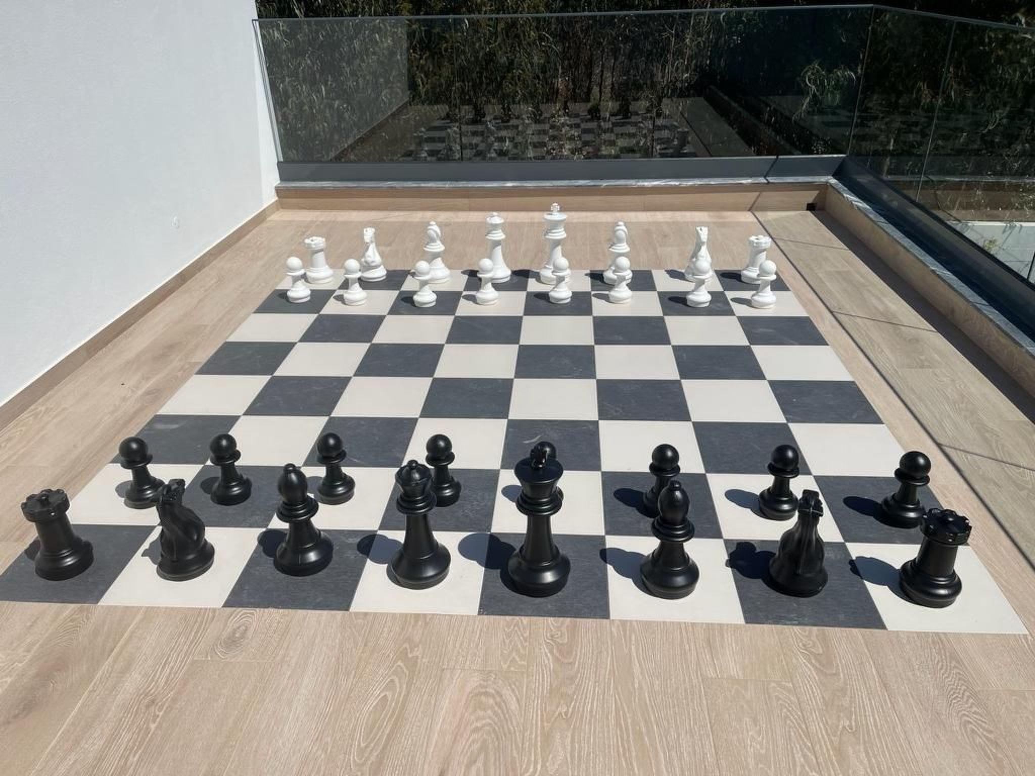 - XL chess set on roof terrace