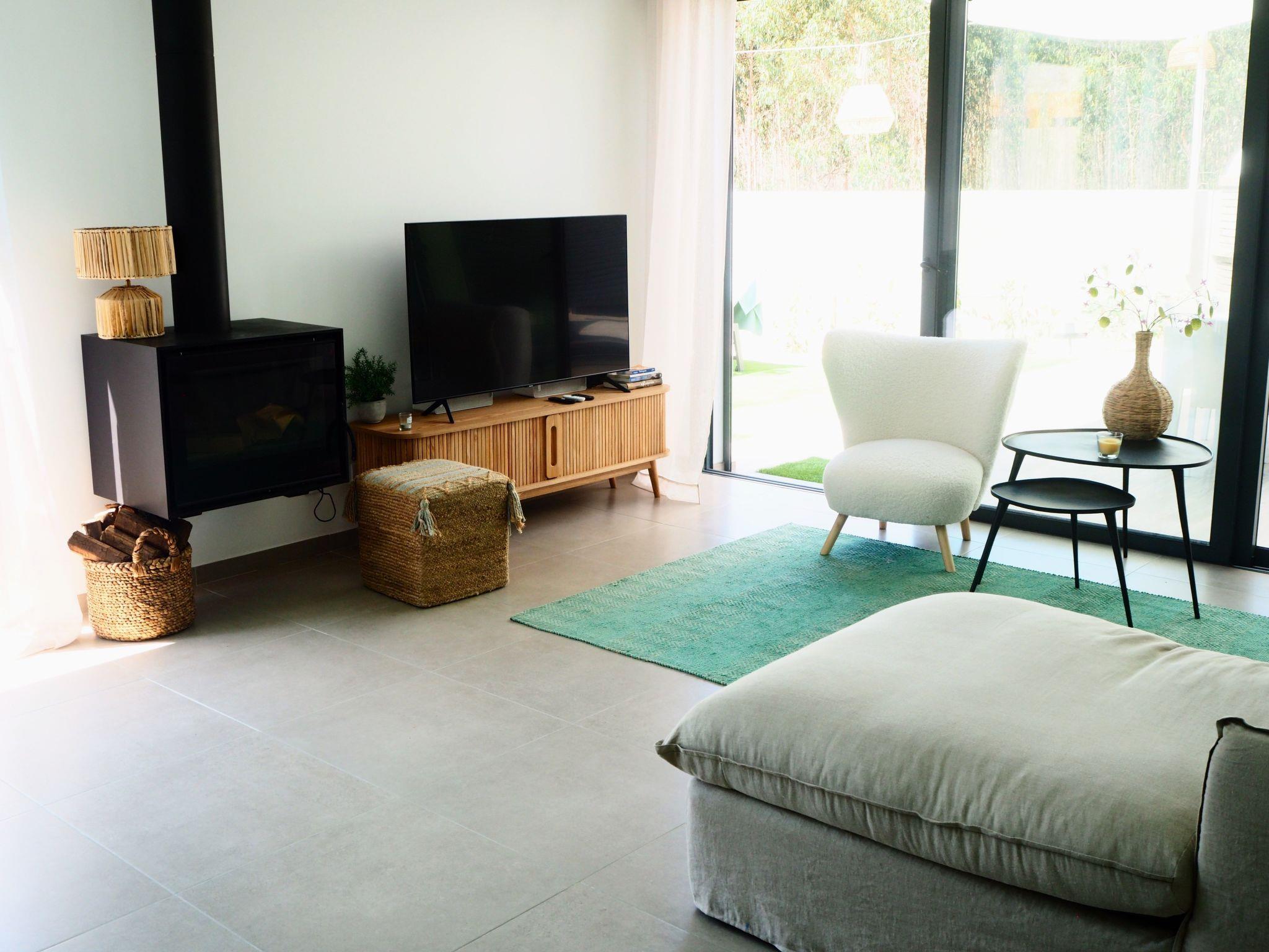 Brand new modern and luxurious villa with a large living room and kitchen including a cooking island. There are four bedrooms - two are en-suite. The bedrooms have four double beds, large HD 4K smart TV in every room and super fast WiFi. Each room in the villa has air conditioning and heating. The living room has a state of the art audio system and a modern fireplace. Two mountain bikes are available in the villa .