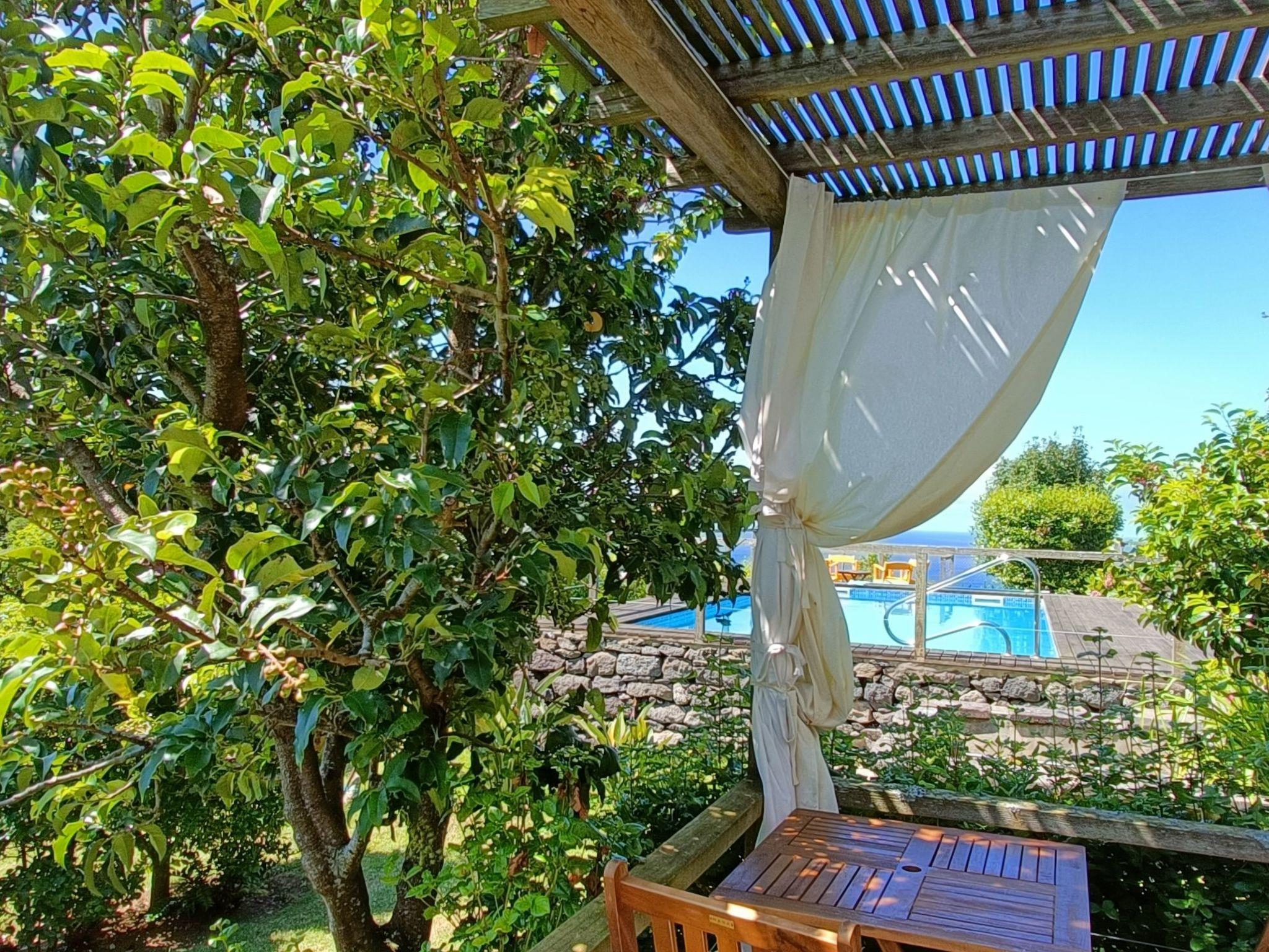DESCRIPTION – This cottage is surrounded by the blue sea on the horizon and the deep green of the surrounding mountains. It has a garden area with some native plants, fruit trees and flowers. Besides, the guests of the two houses forming the “Casas do Pátio” complex (“Casa do Pátio” and “A Arribana”) also have a barbecue and a pool at their disposal.